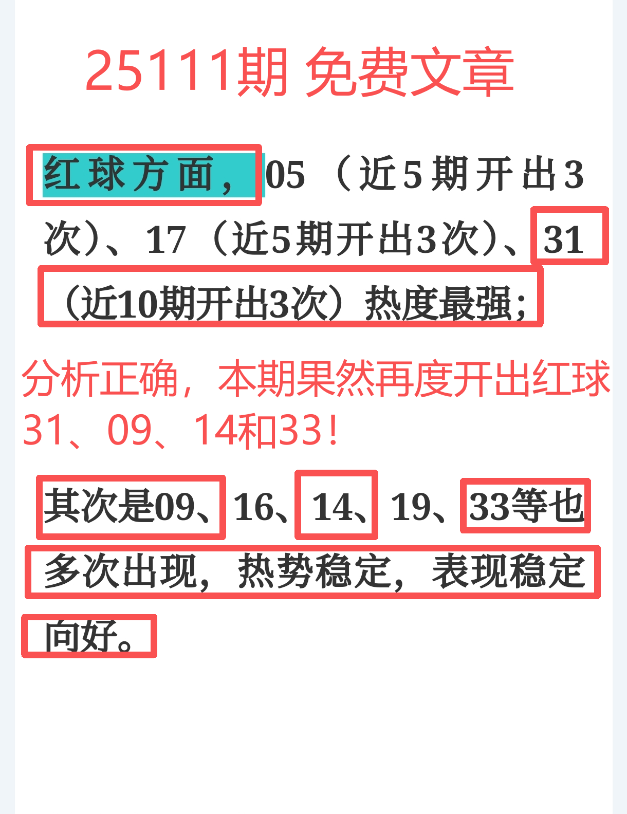上期免费文章共命中5枚核心红球(09、14、18、31、33)+ 蓝球走势准确命中各大趋势分析全面到位、节奏感满分,不仅看点十足,更验证了我们的实战参考价值真的很高!
