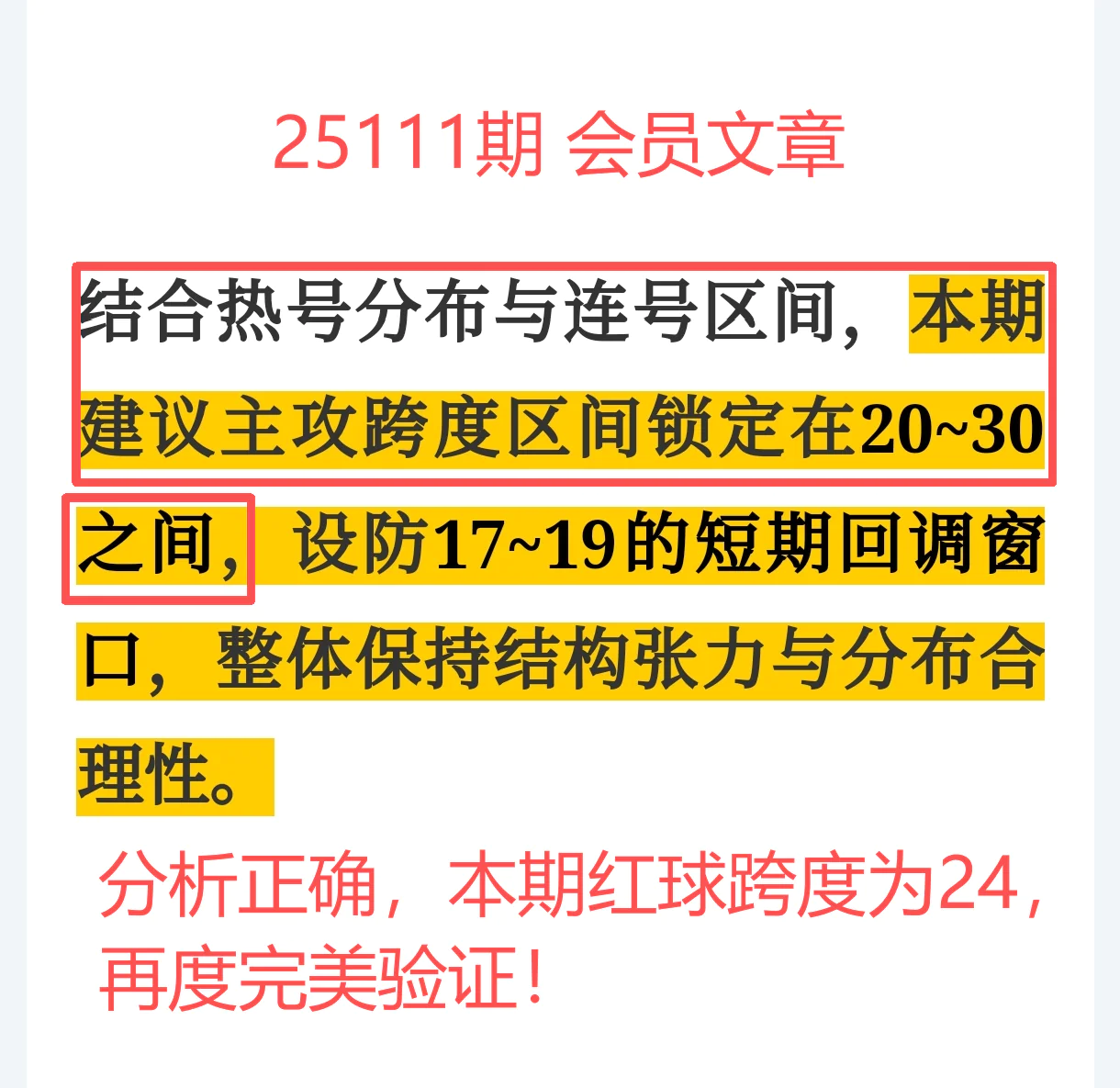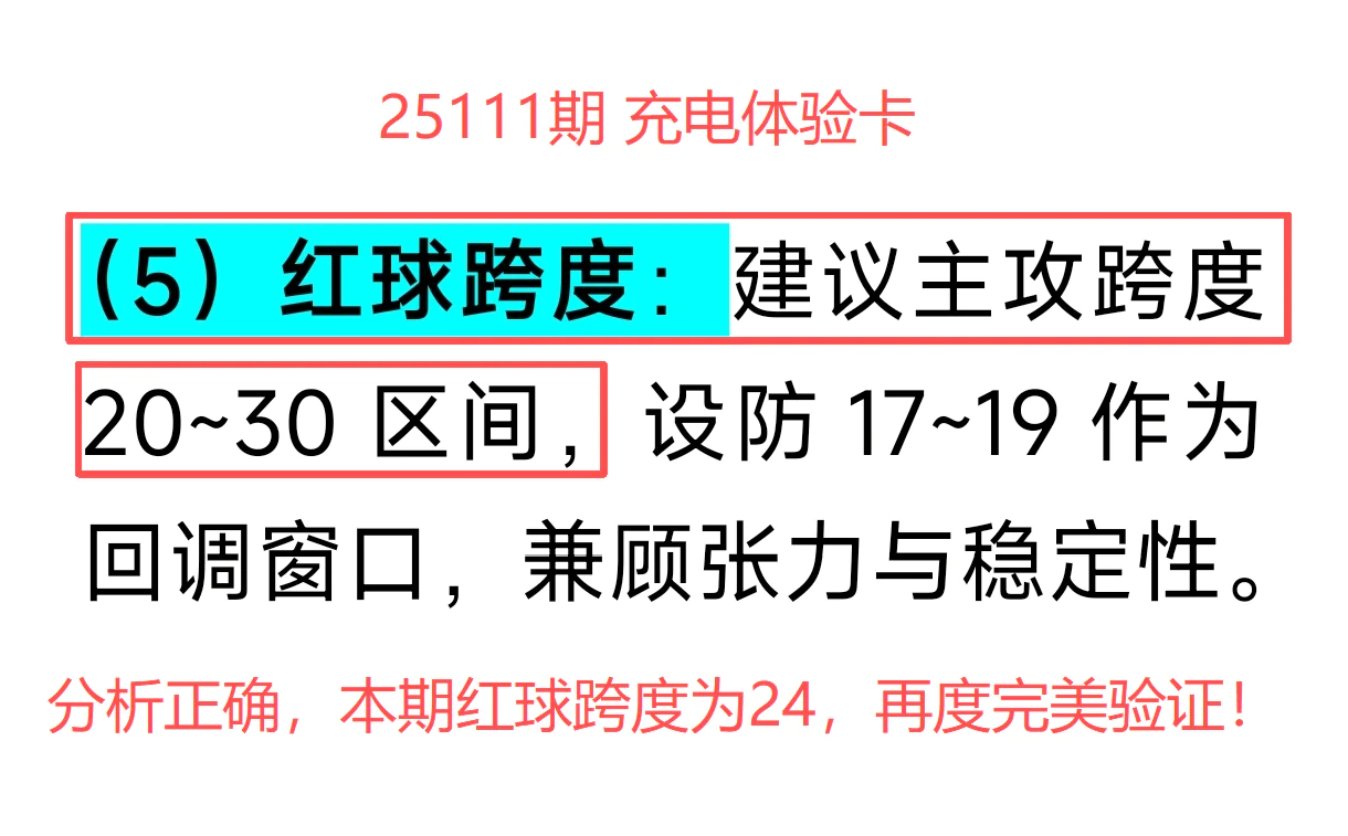红球跨度24再度完美落点在建议区间内,趋势把控力持续在线,效果看得见!