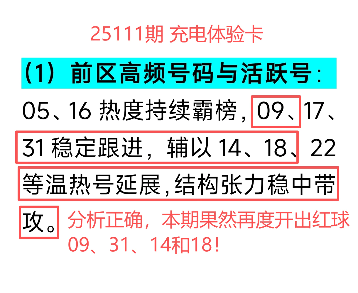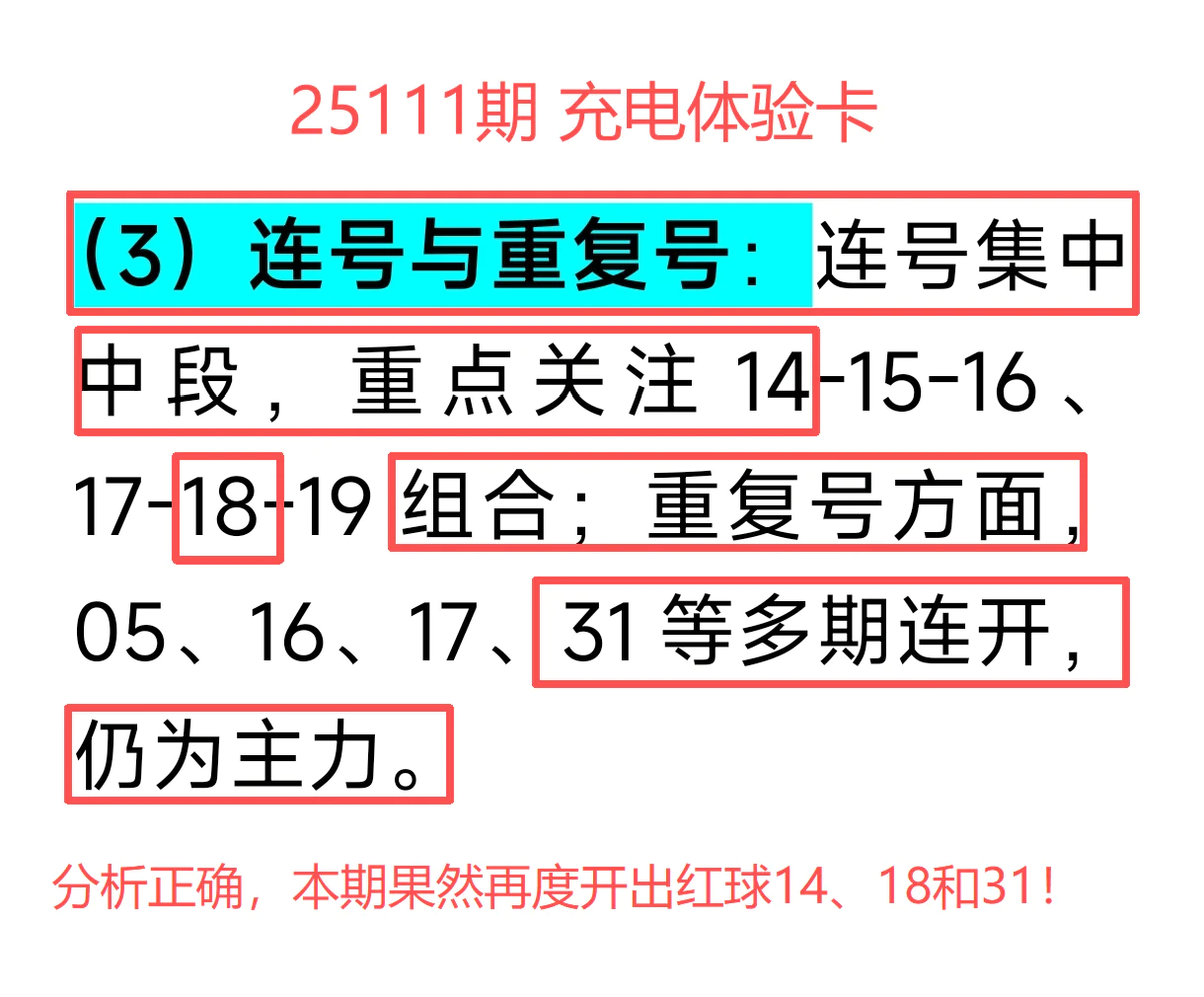 命中红球14、18、31三枚,连号结构+热号延续双重命中,体验卡含金量稳稳的!