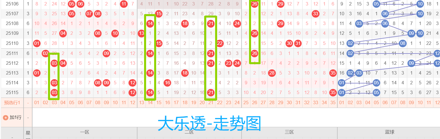 上期开奖号码为03 12 14 21 35 + 01 05,我们的推荐分析再度高能爆发:
