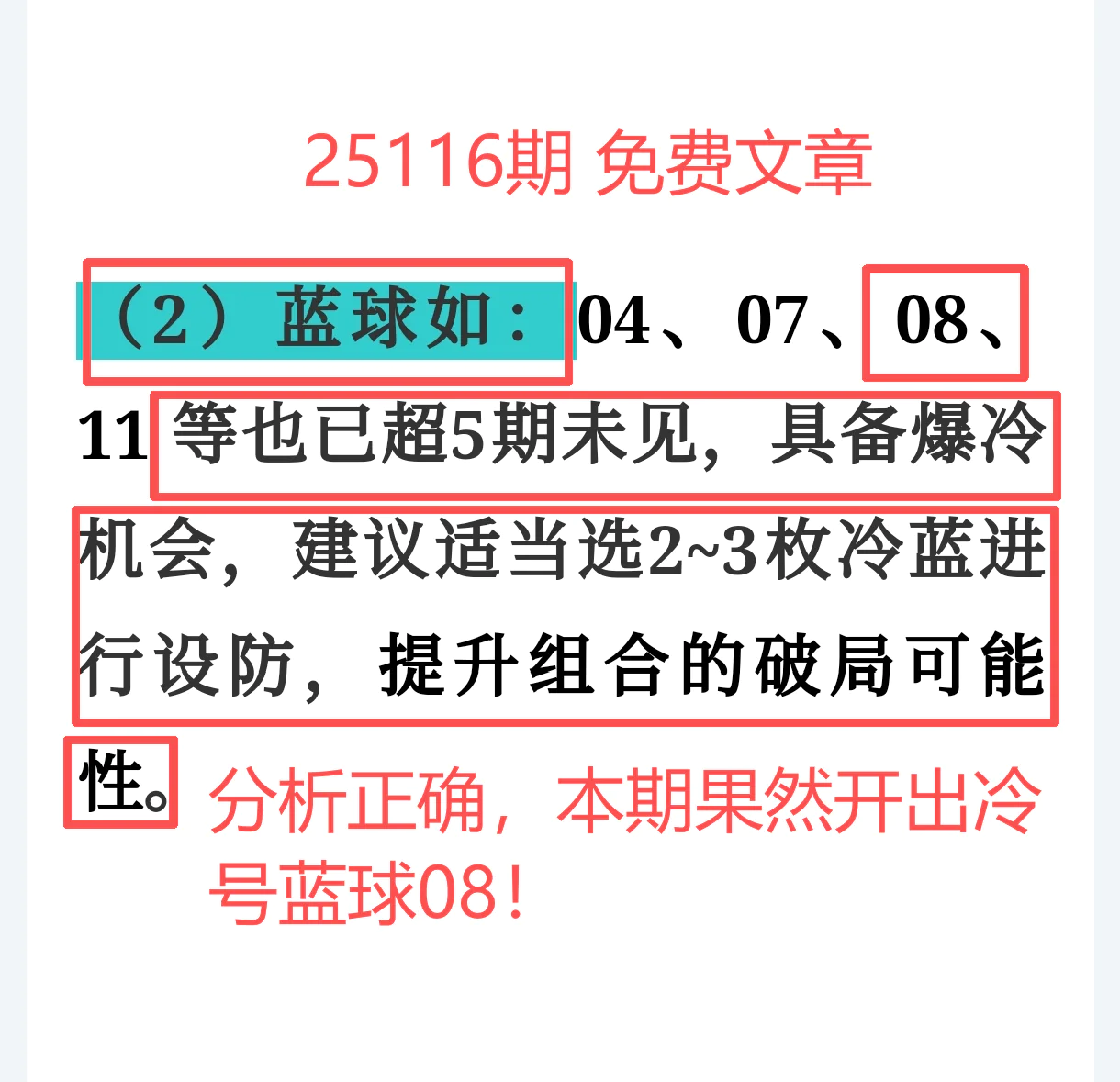 1、冷号回暖分析:提前提示冷号回暖,精确命中蓝球08!