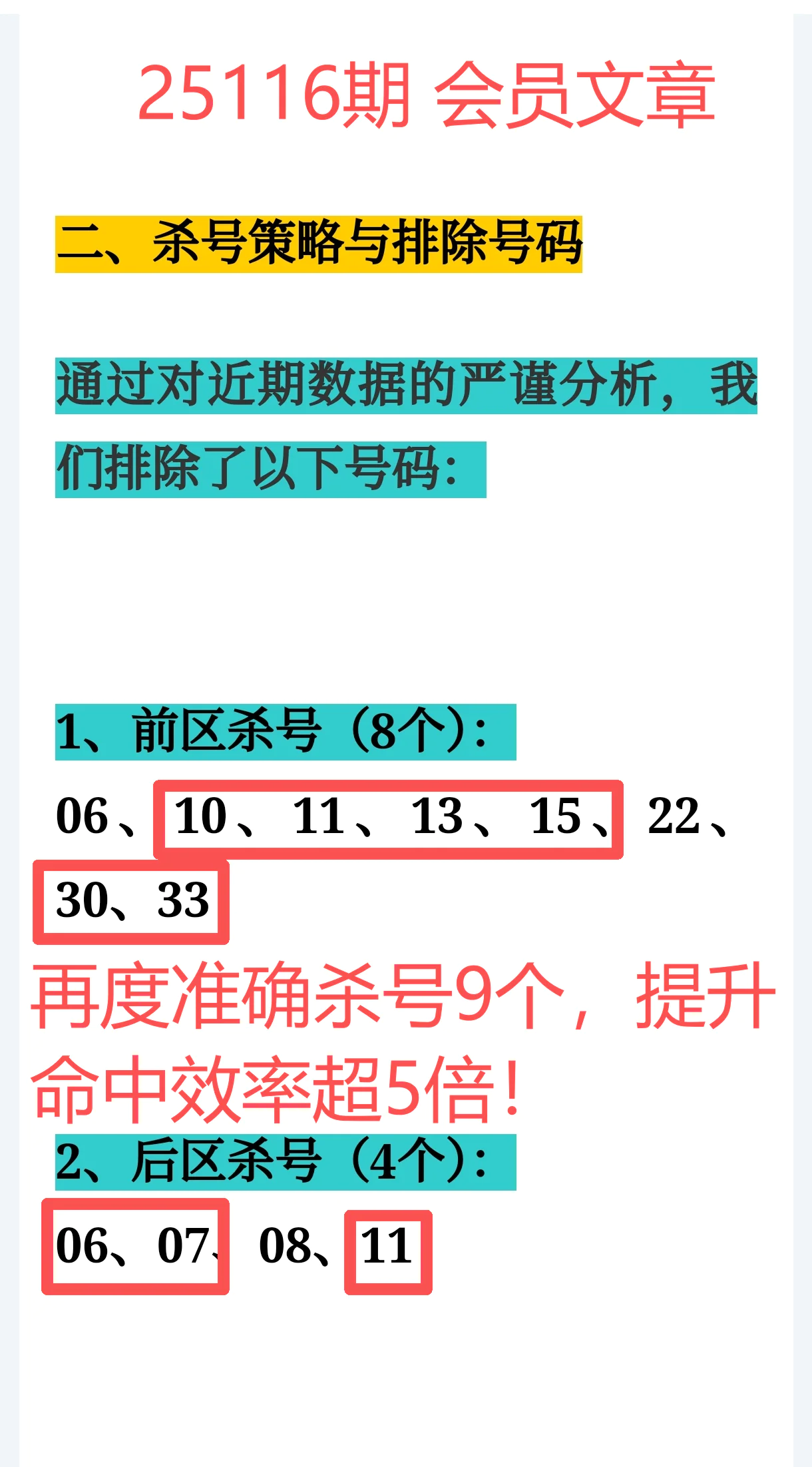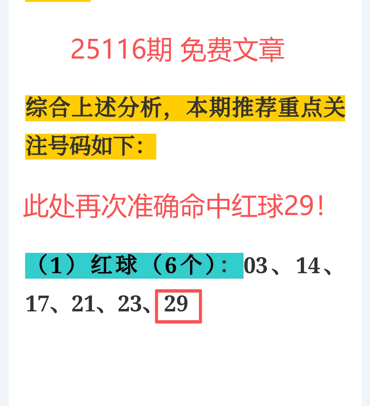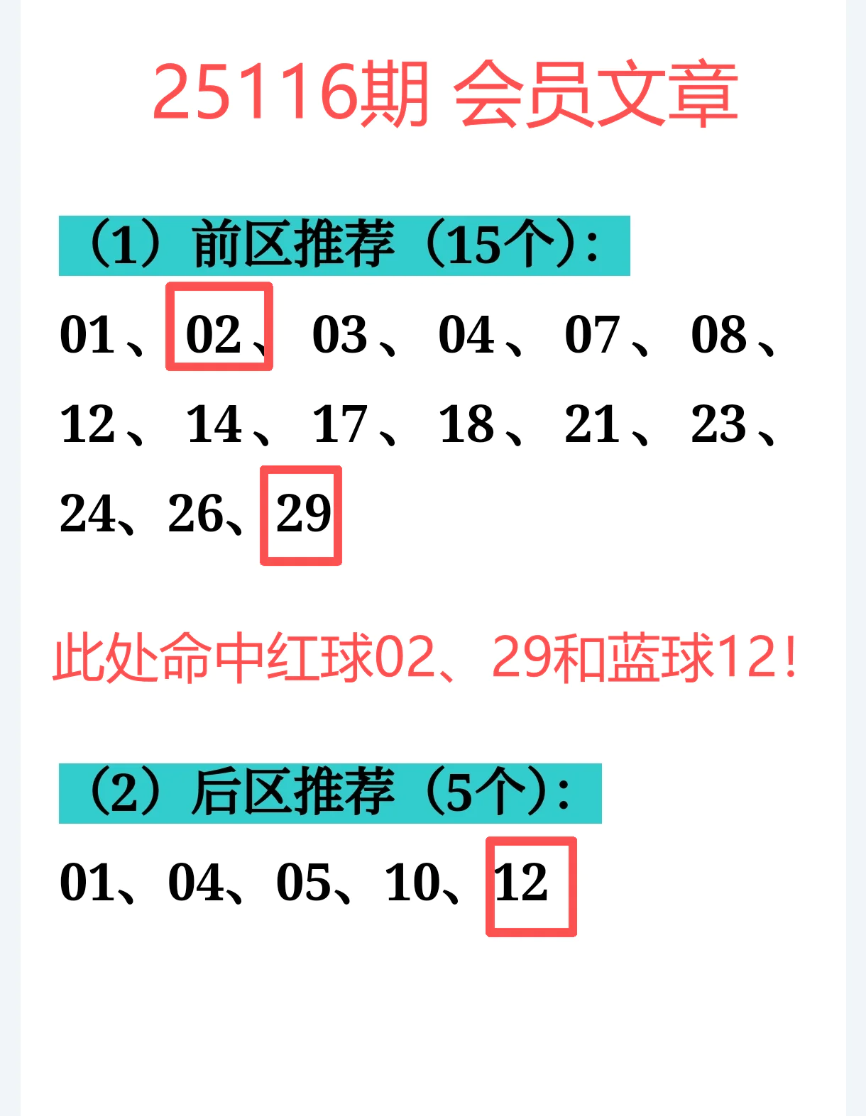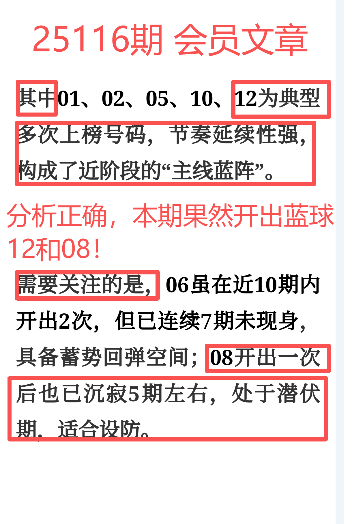 综合来看,上期【免费文章+会员文章+充电体验卡】三线齐发,共命中4个号码——红球02、16、29与蓝球12,此外杀号再中9个,整体命中效率提升超5倍,节奏分析逻辑再次得到验证,多个维度精确踩点,实力毋庸置疑~