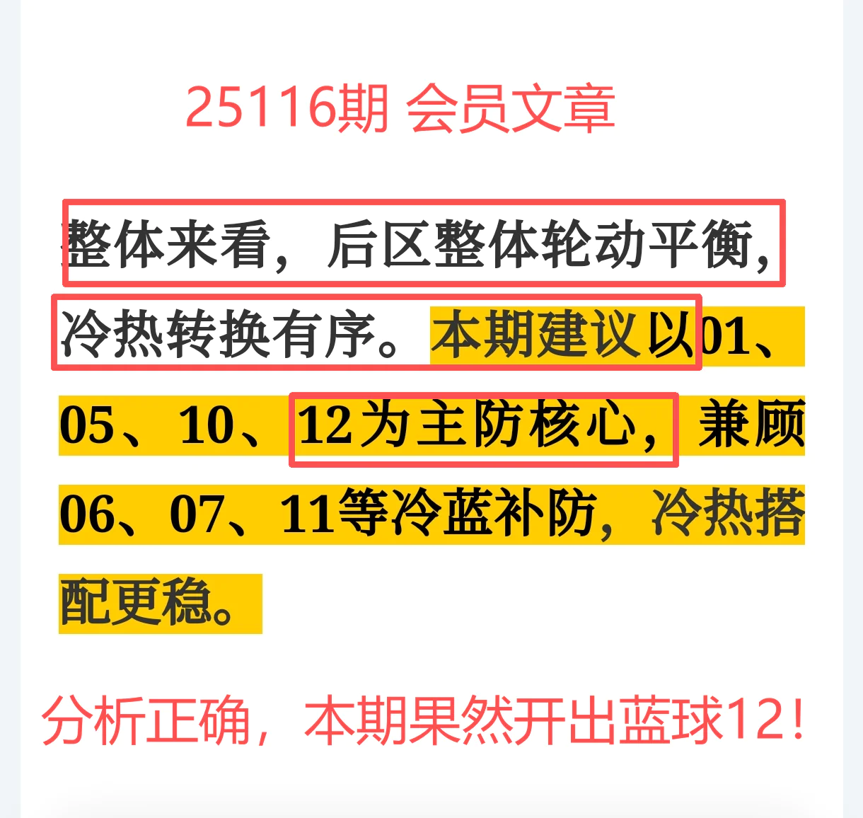 准确命中热号蓝球12,节奏主线再次延续,后区分析精确落点~