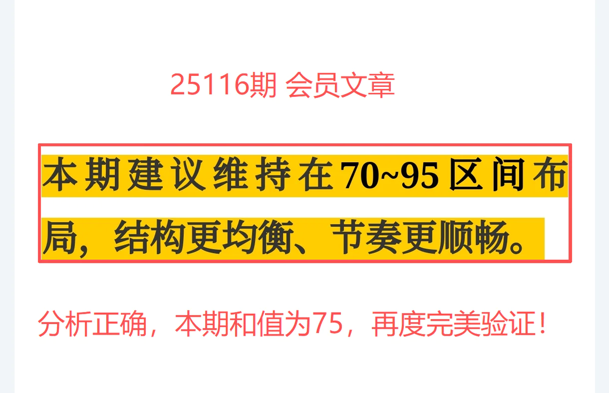 上期红球和值开出75,精确落入“70~95”主攻区间,整体组合节奏再度命中~