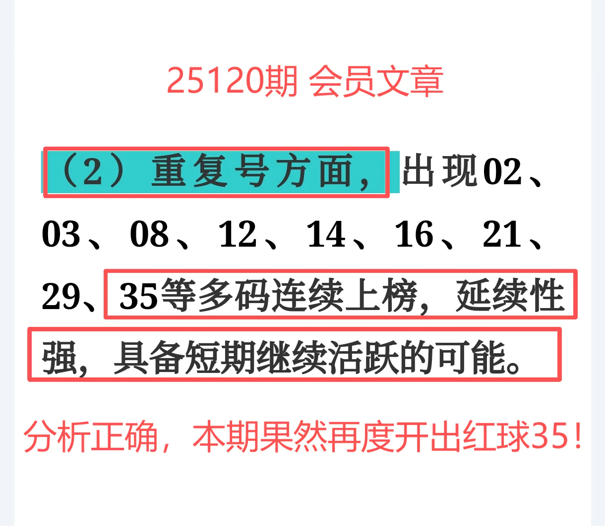当然,上期7个冷号集中回补,也造成会员文章中的重点号码部分出现一定波动,但这正是彩票节奏的魅力所在 —— 每一次反转,都是新一轮周期的开启信号。