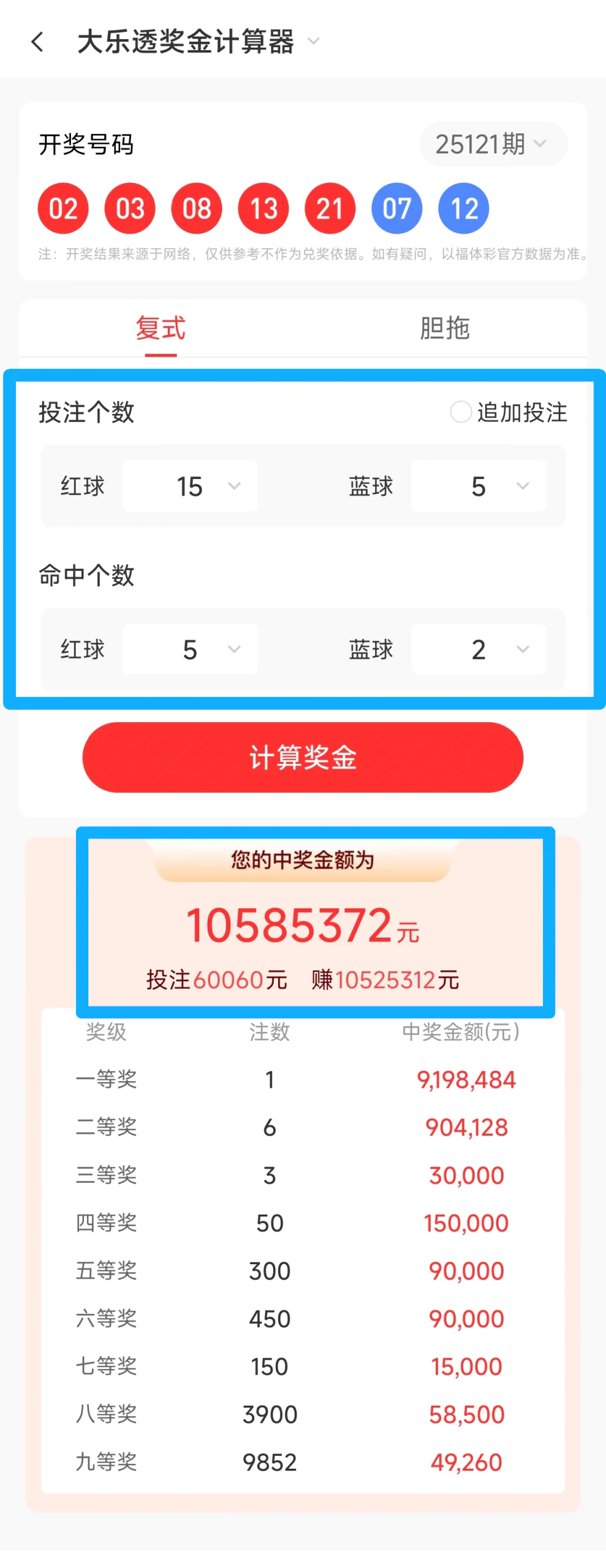 • 25121期:再中 5+2,狂揽奖金 1059万元