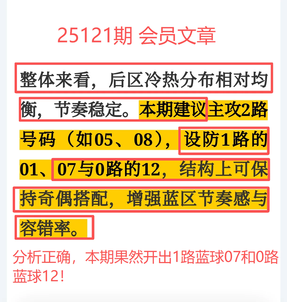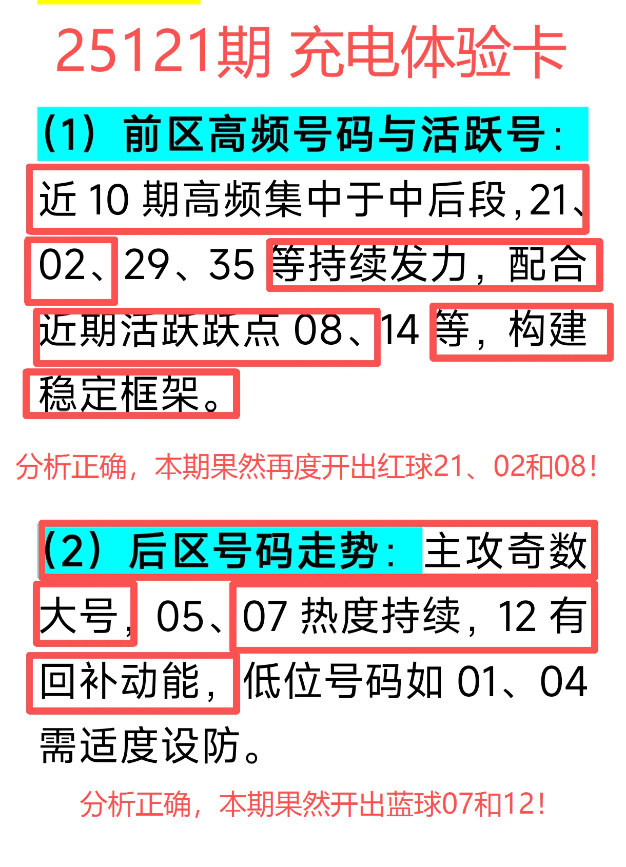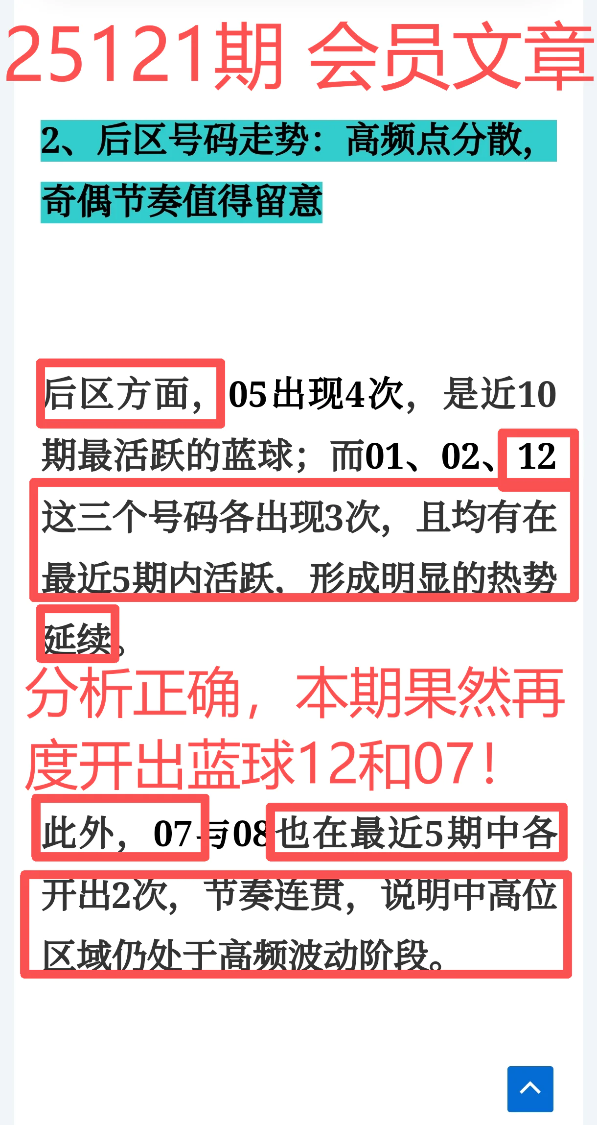蓝球07与12双双上榜,后区走势稳中爆发,节奏延续性极强,体验卡会员再度收获满满信心!