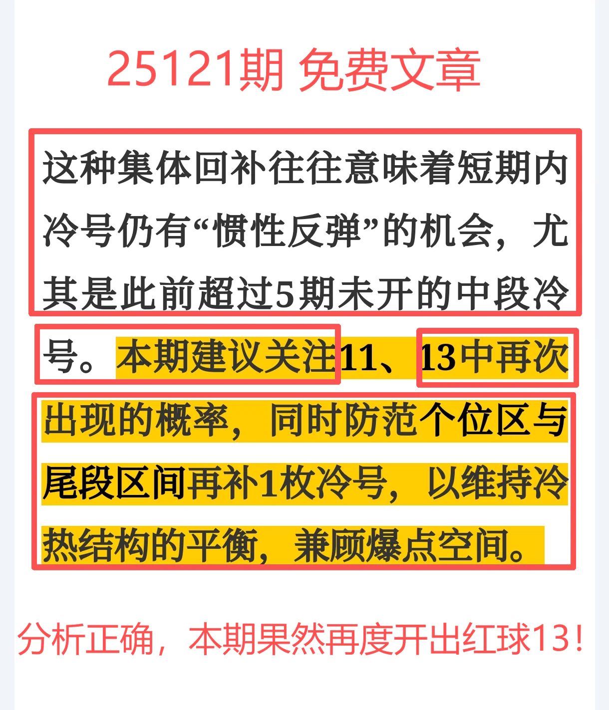 成功拿下冷号红球13,走势预判命中率再提一档,冷热转换信号踩得又稳又准!
