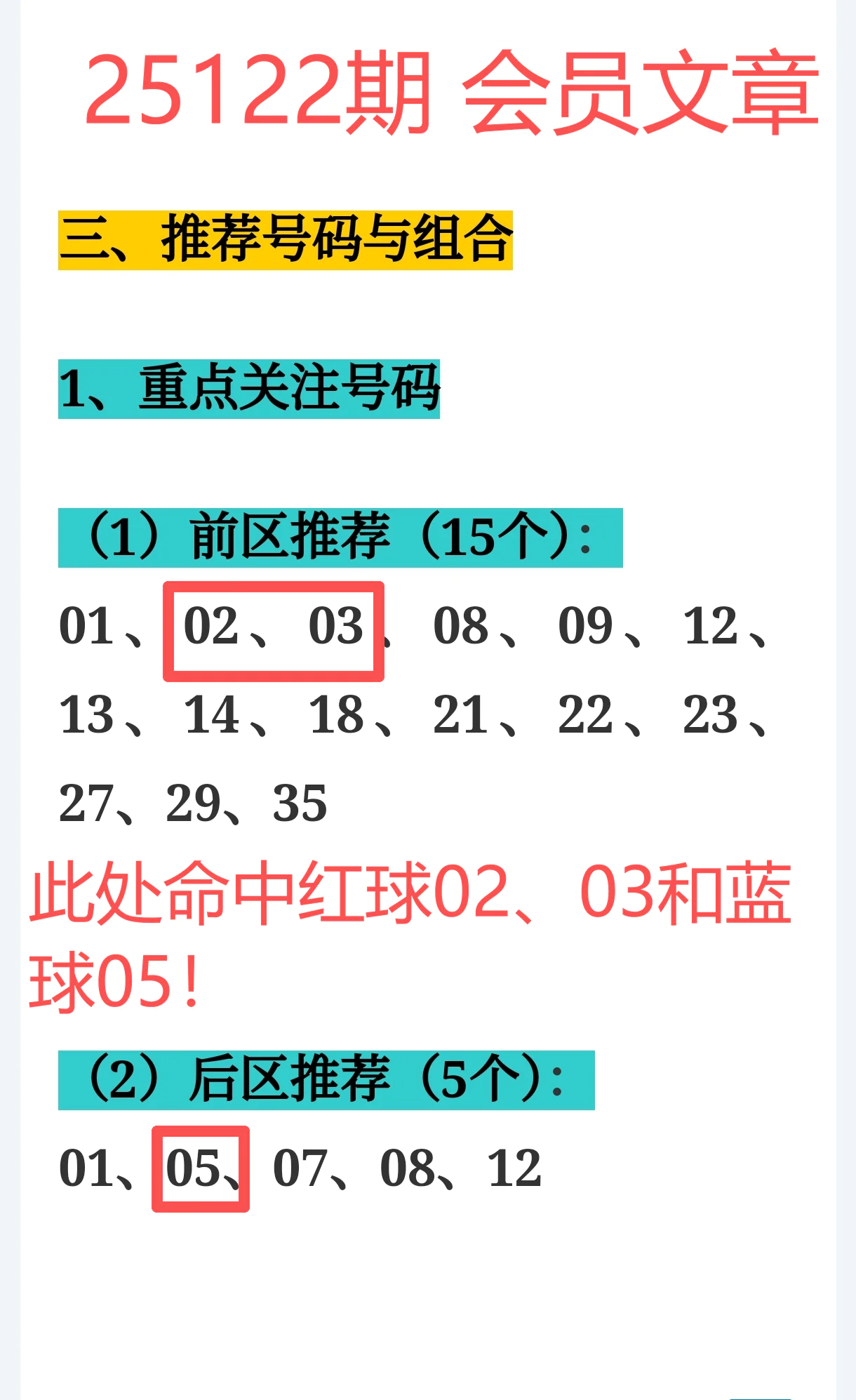 所以,上期免费文章 + 会员文章 + 充电体验卡 共计命中5个号码,分别是红球02、03、16,蓝球04、05;