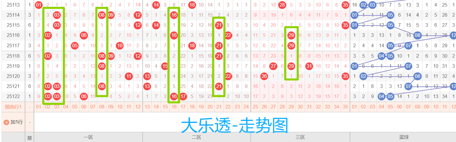最近10期红球中,02、03、08、21、29、16等多次出现,其中02和03连续两期开出,属于当前的短期强热组合,延续性较强,值得持续留意;