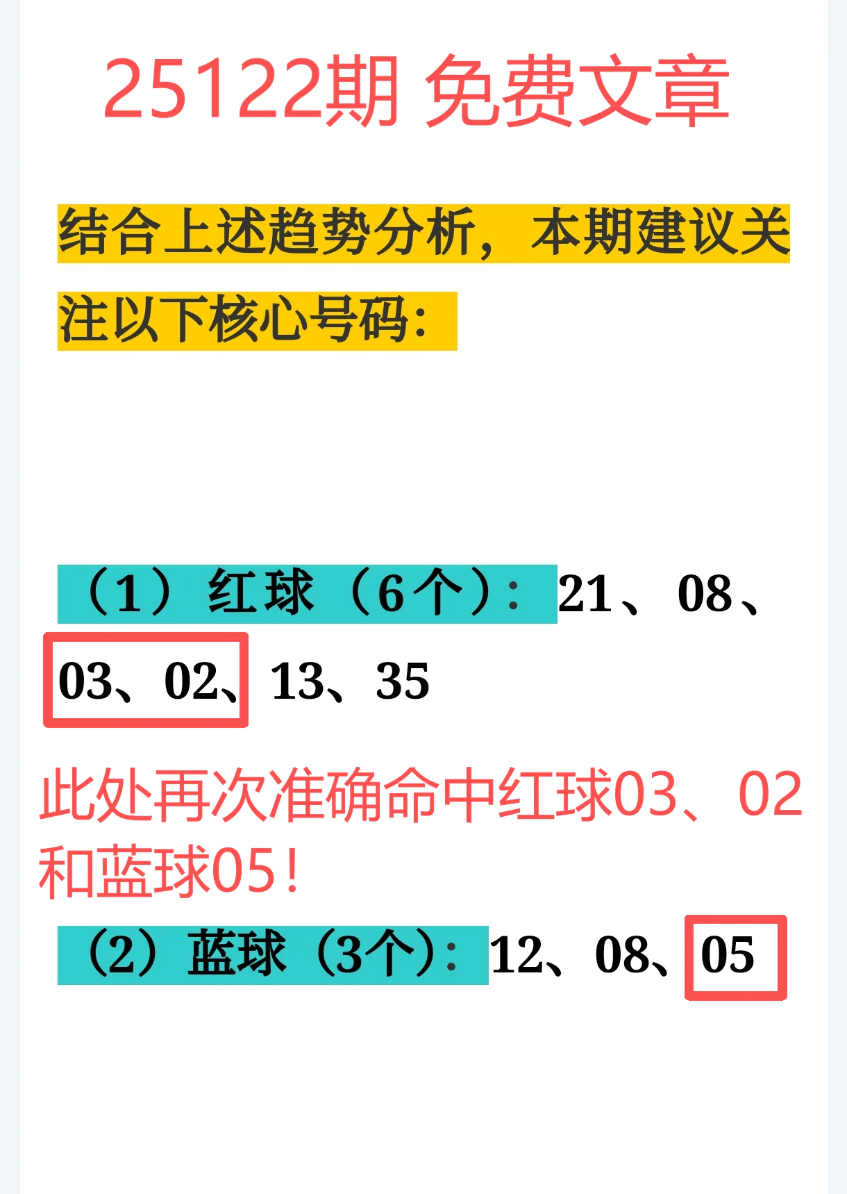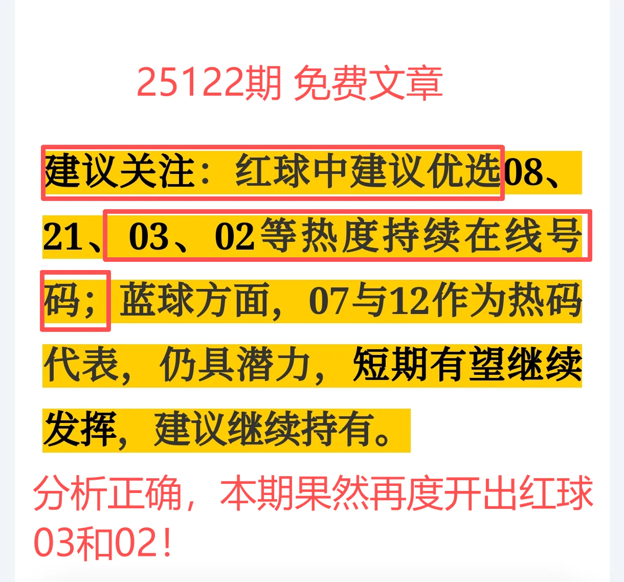 红球02、03和蓝球05全数命中,免费内容也能打出参考价值满满的实战节奏!