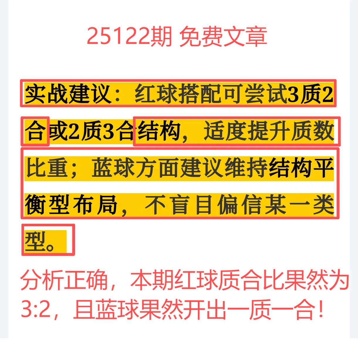 命中红球质合比3:2,同时蓝球质合平衡布局也成功拿捏,上期蓝球开出1质1合,布局完整落地;