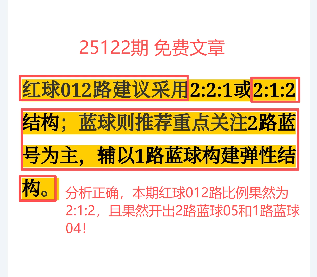 准确命中红球012路比例2:1:2,后区蓝球提前提示1路+2路同步走强,结果果然双双命中,节奏稳准狠;