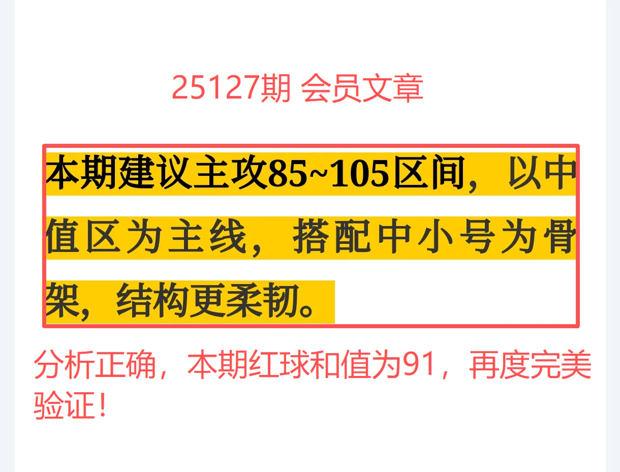 和值91,稳稳落在建议区间85~105之内,走势判断再添一笔亮眼命中!