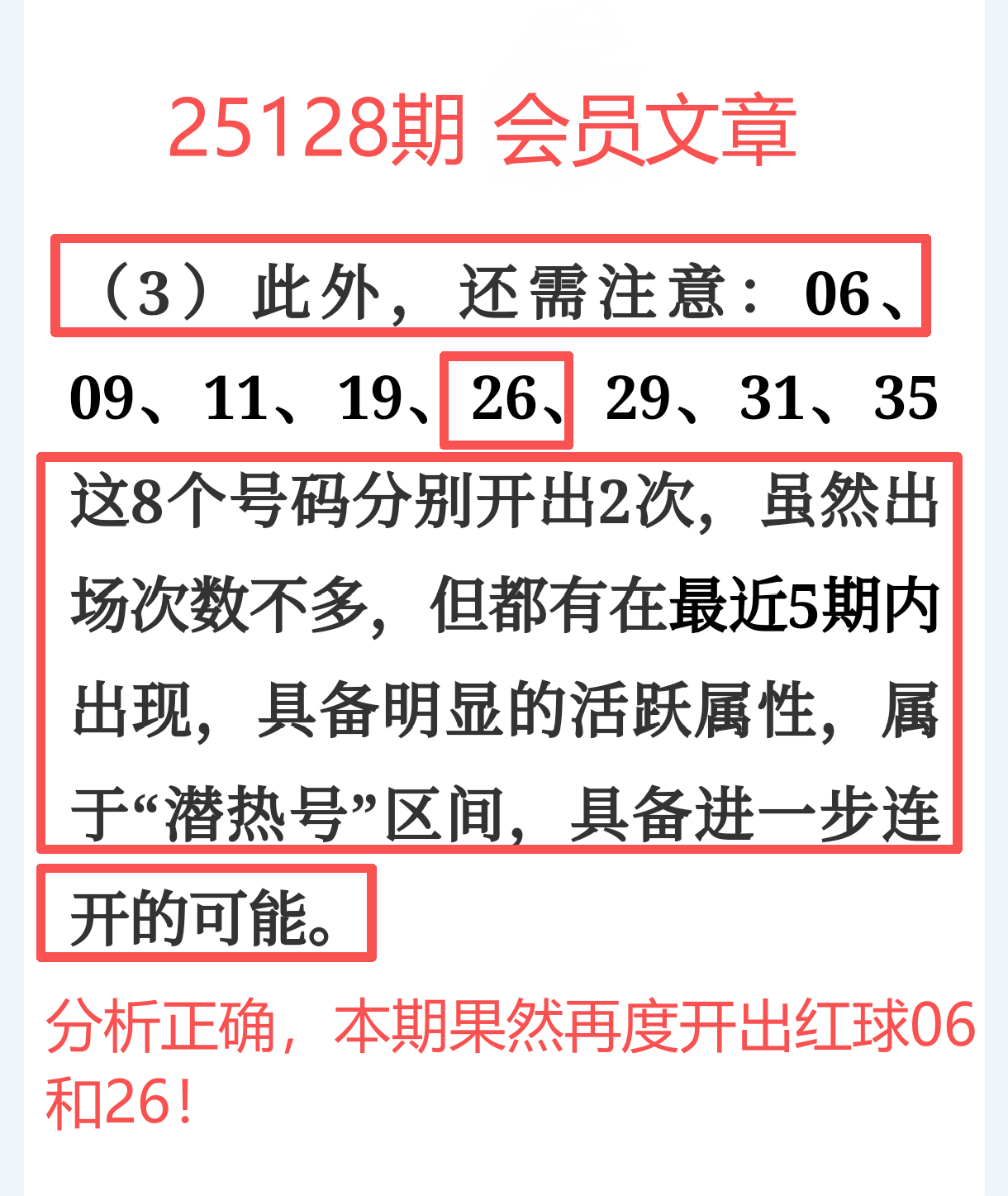 准确命中红球06、26,结构节奏再中要害,活跃号判断依旧稳准狠;