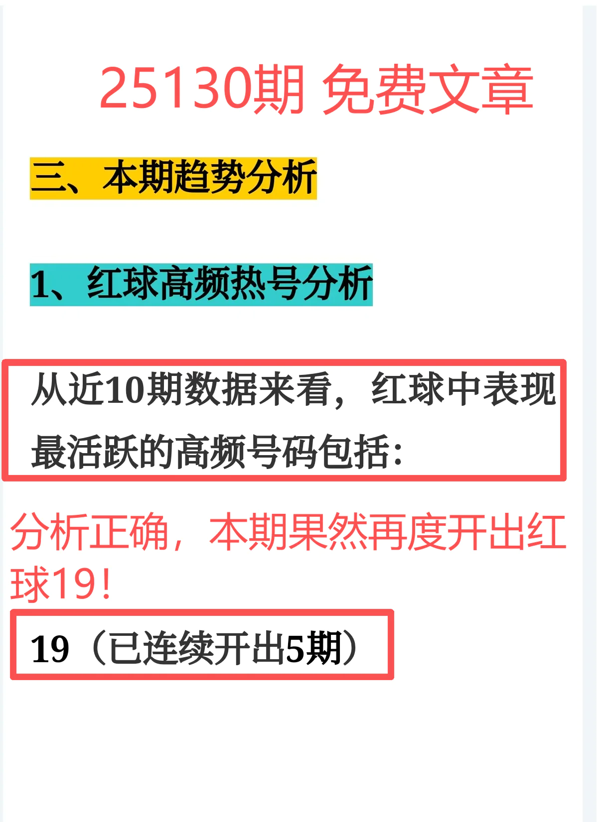 1、高频热号分析:命中红球19!趋势分析精确命中核心热区;