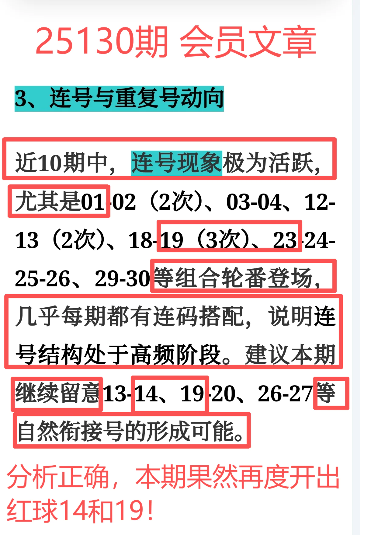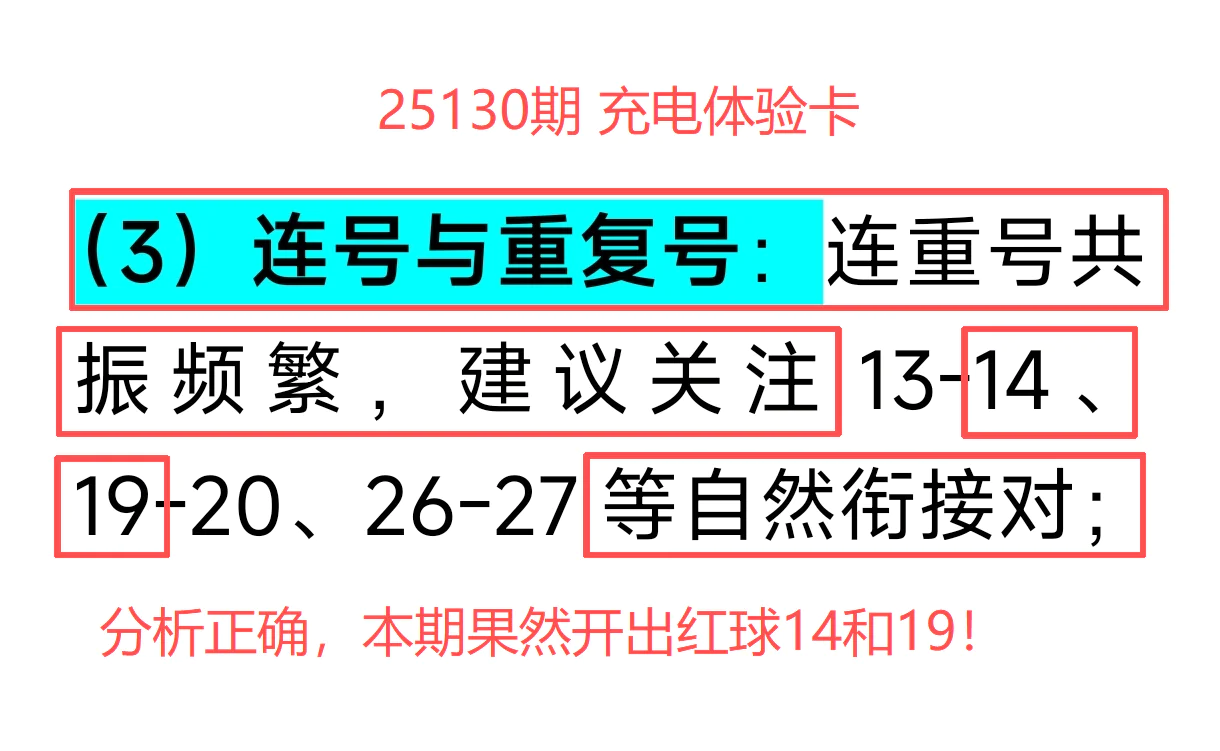 准确命中红球14、19,提前提示“连号有望再现”,果断防守成功命中双红;