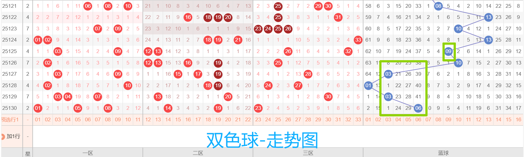 蓝球方面,“0路蓝球”(如03、06、09)近期走势较强,10期中已出现4次,基本确立主力地位。建议本期仍以“0路”为主攻方向,备选号码如03、06、09,同时可适度防守“1路蓝球”(如01、10),以防突袭补位。