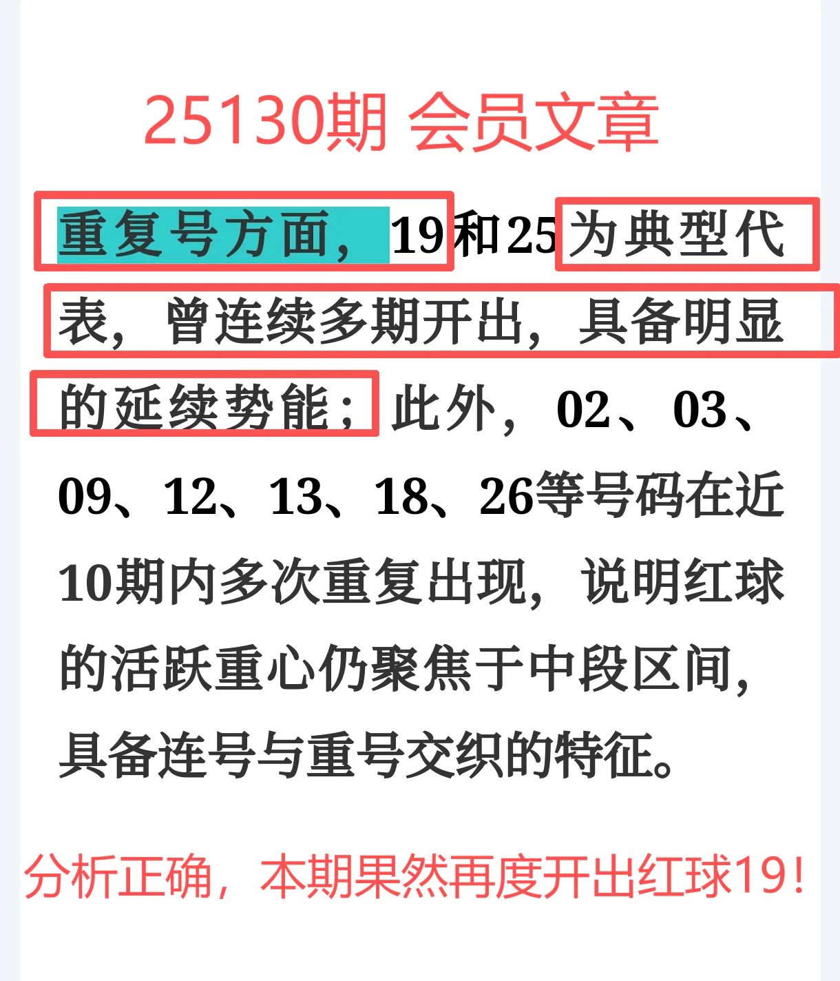 再度命中红球19,本期热号大多沉寂,唯有我们稳抓节奏、持续锁定19,实属难能可贵;