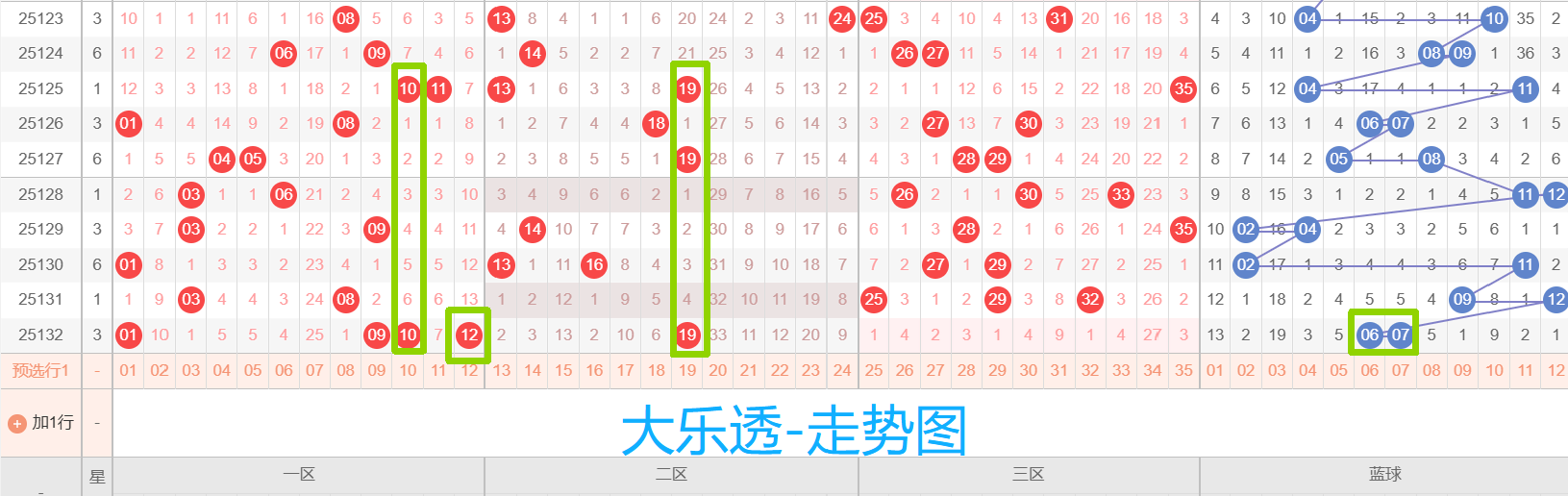 上一期开出了10、12、19这三枚冷号红球,蓝球端的06、07也同样属于低温回补,再度验证了大乐透的“冷热轮动大周期”。从历史经验看,当冷号出现集中爆发后,往往意味着下一个阶段将持续出现局部冷点回补。