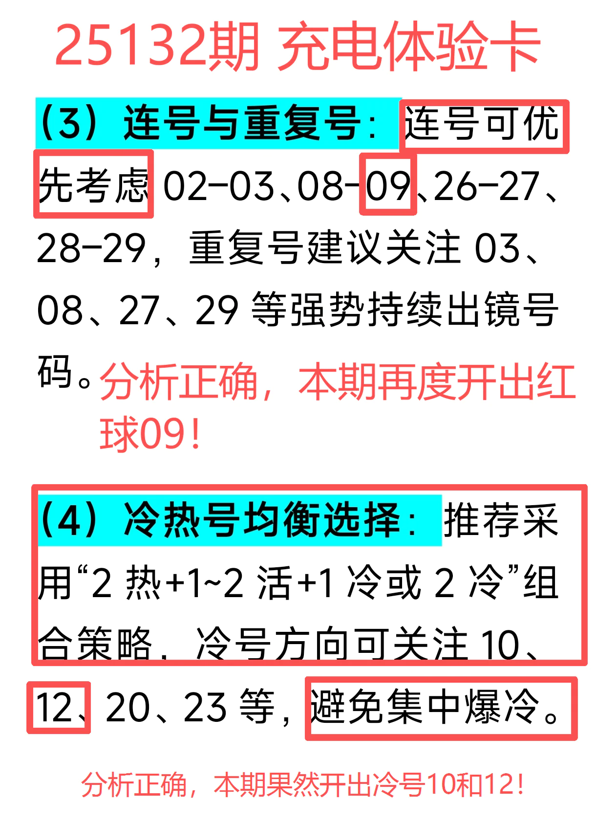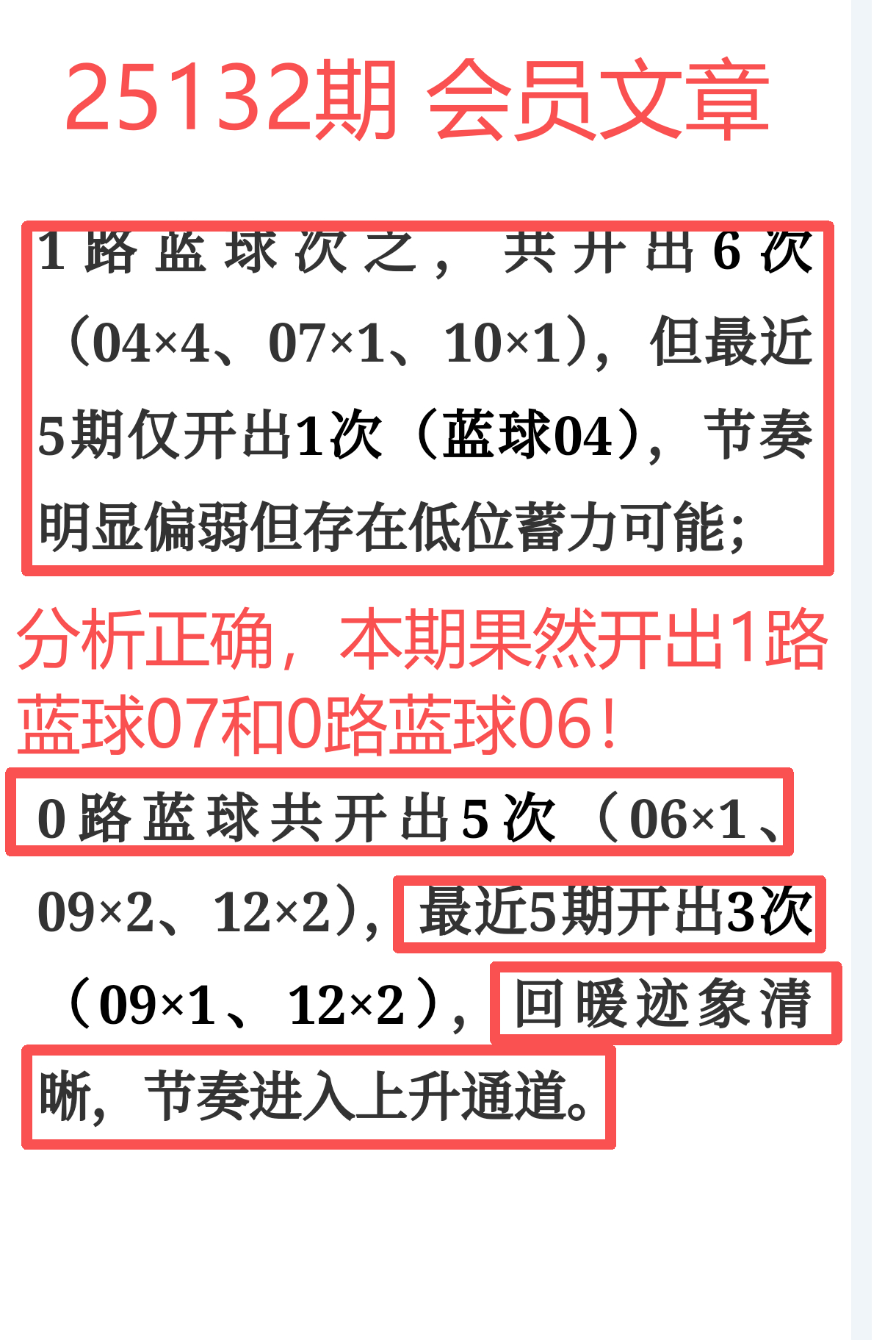 各方趋势分析全面契合开出结果,从热号到冷号、从连号到蓝球,每一个板块都得到了实战验证,再次展现出我们节奏打法的系统性与稳定性。