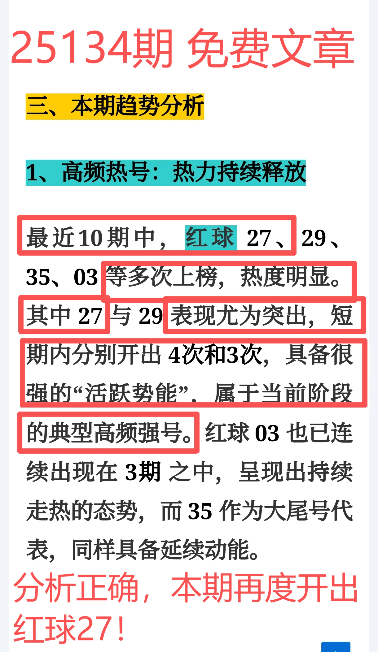 命中红球27,抓住最稳节奏,核心继续爆红!