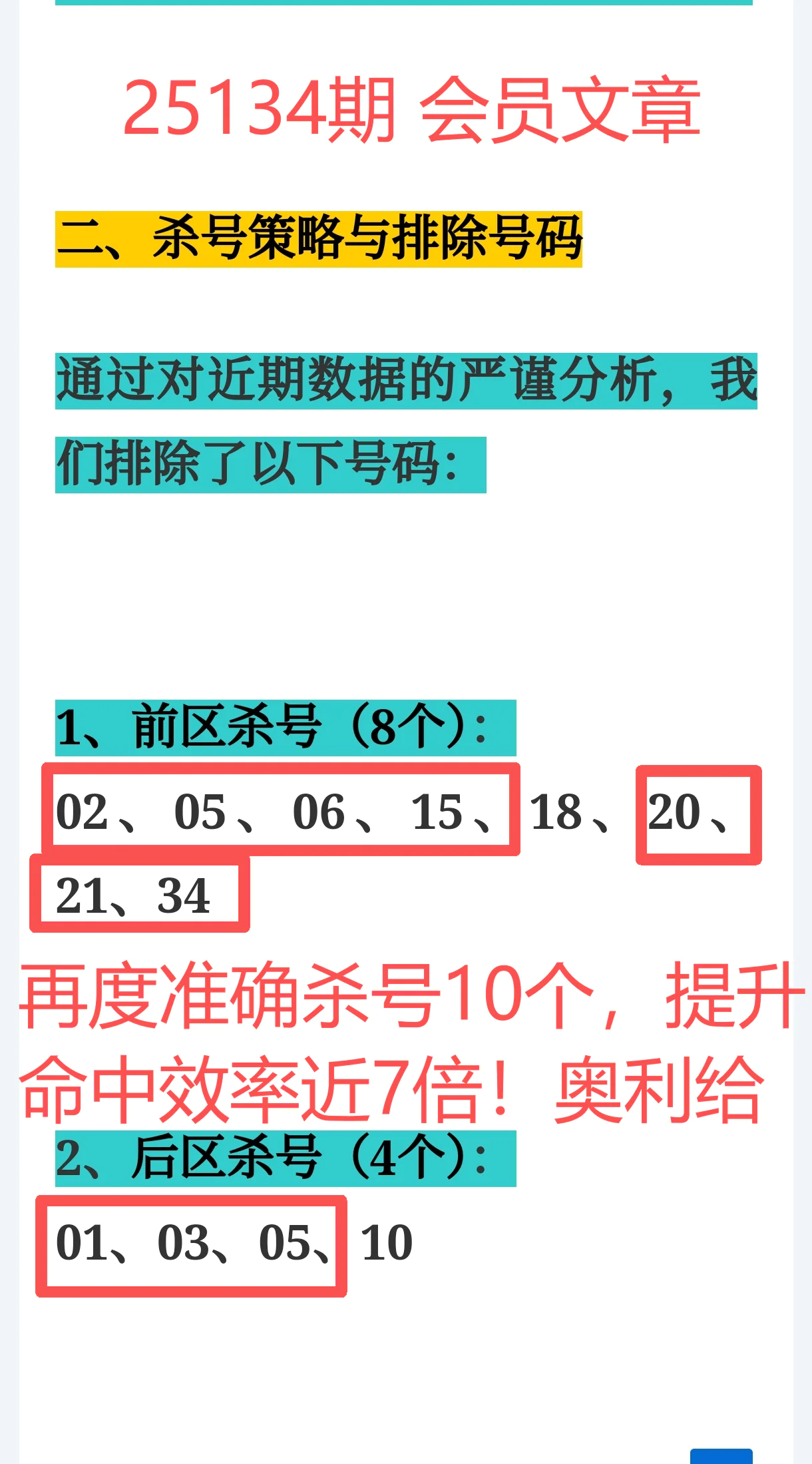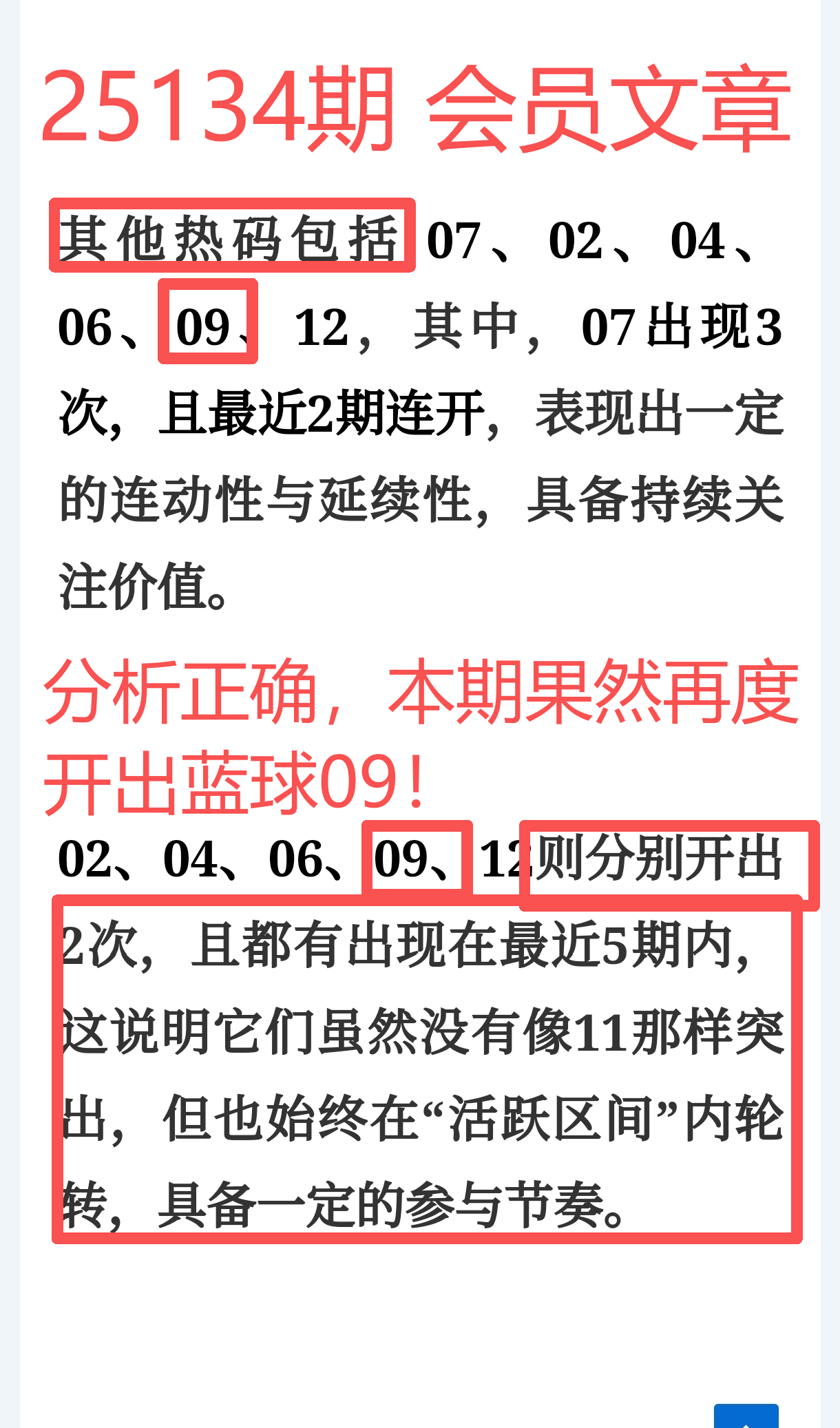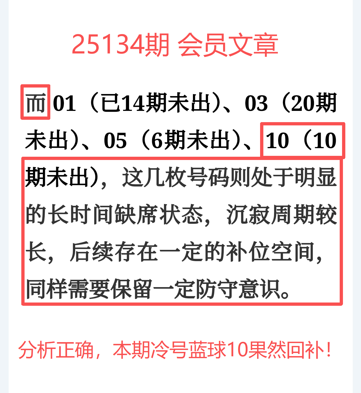 上期【免费文章 + 会员内容 + 充电体验卡】三线齐发,合计共命中5个号码(红球07、12、27、33 + 蓝球09),再中10个杀号,排雷命中率达83.3%,整体命中效率提升近7倍