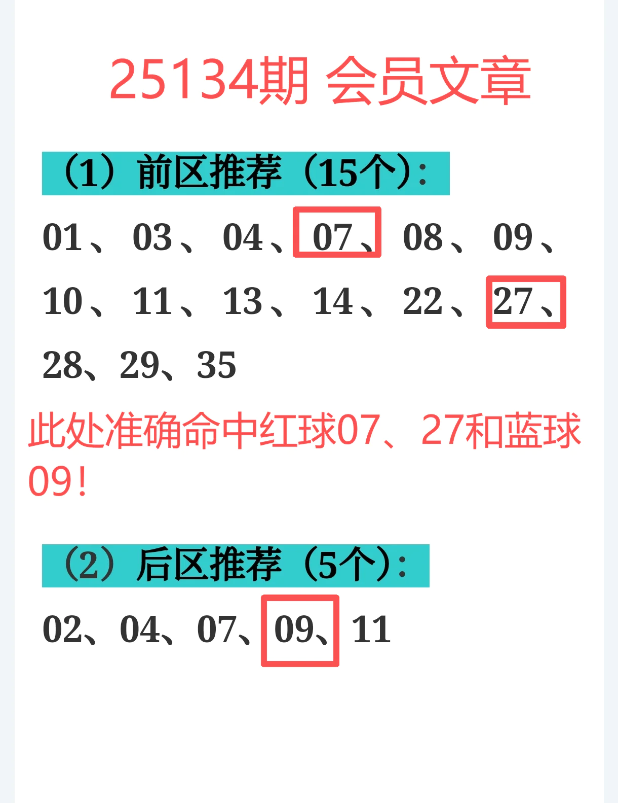 命中红球07、27+蓝球09,重点号码三连中,节奏火力全开!