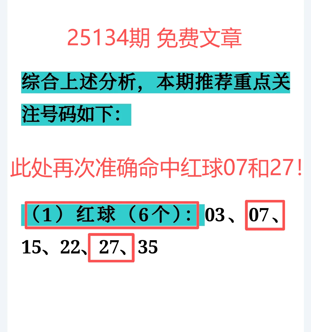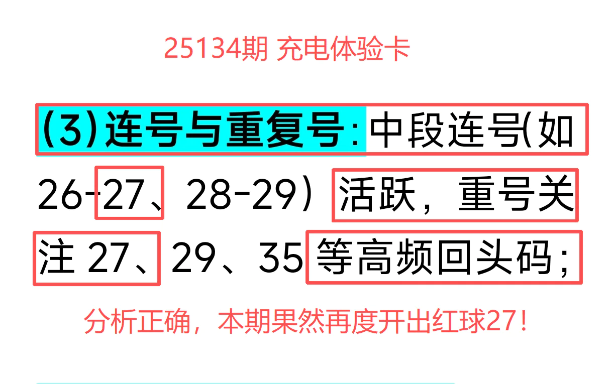 命中红球07+27,连中核心,参考价值直接拉满!
