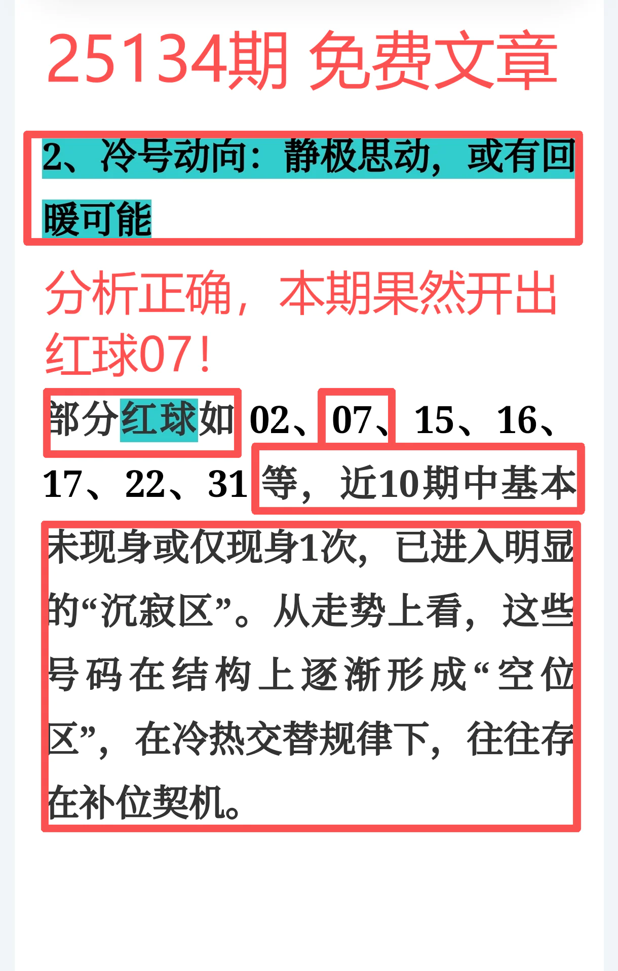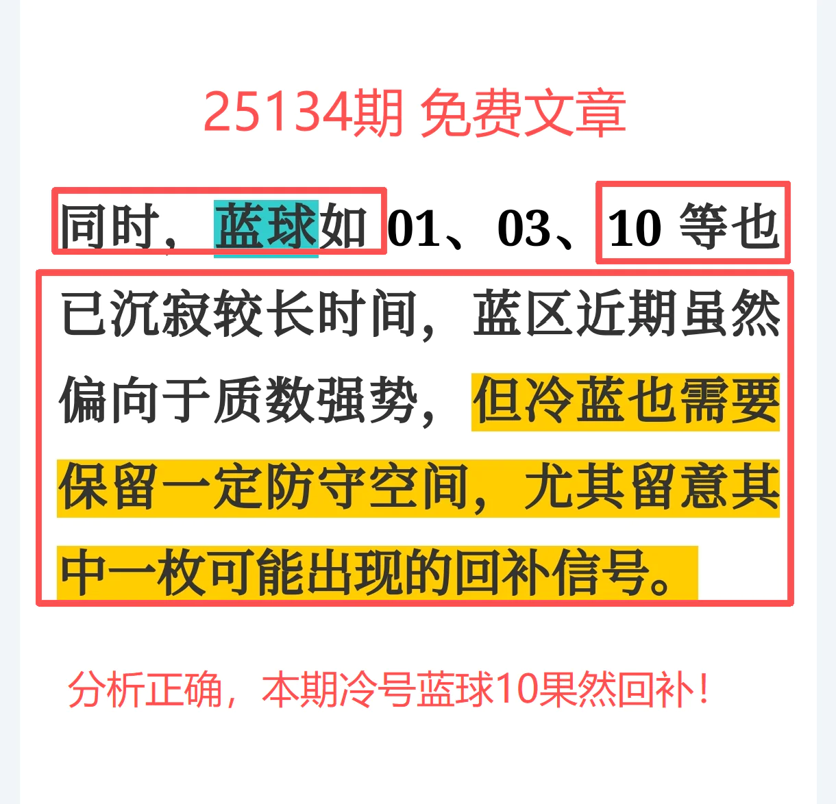 命中红球07+蓝球10,回暖方向精确踩中,爆冷也能爆点!