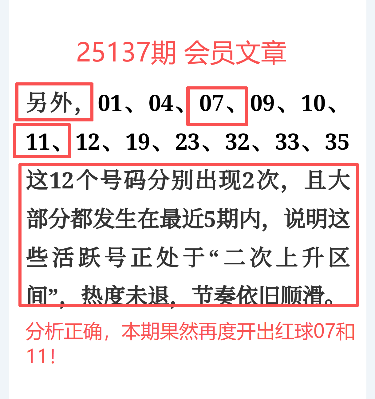 准确命中红球07和11,节奏卡得准、命中效果稳,体验卡稳稳踩中前区核心热点,帮助大家避坑聚焦更清晰!