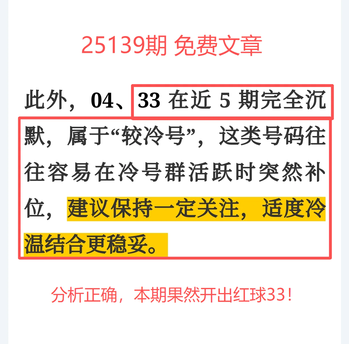 ✅ 冷号回暖分析:准确命中冷号33,典型回暖走势提前锁定;