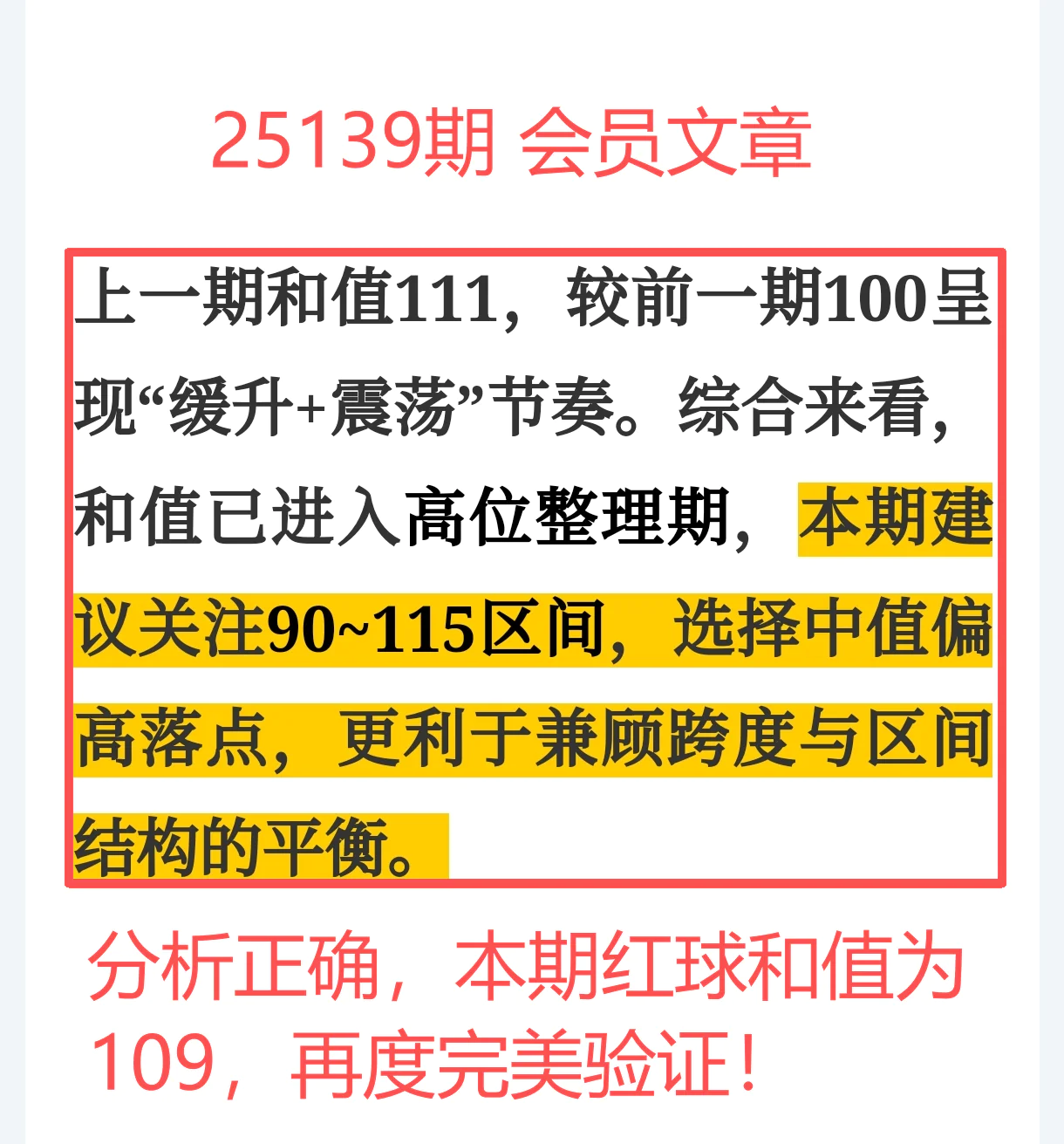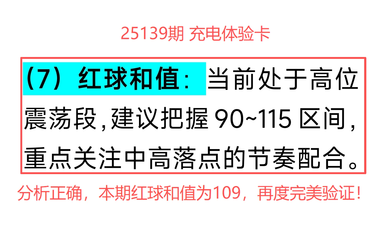 ✅ 和值分析:红球和值为109,完美落入建议区间“90~115”,稳定性一目了然;