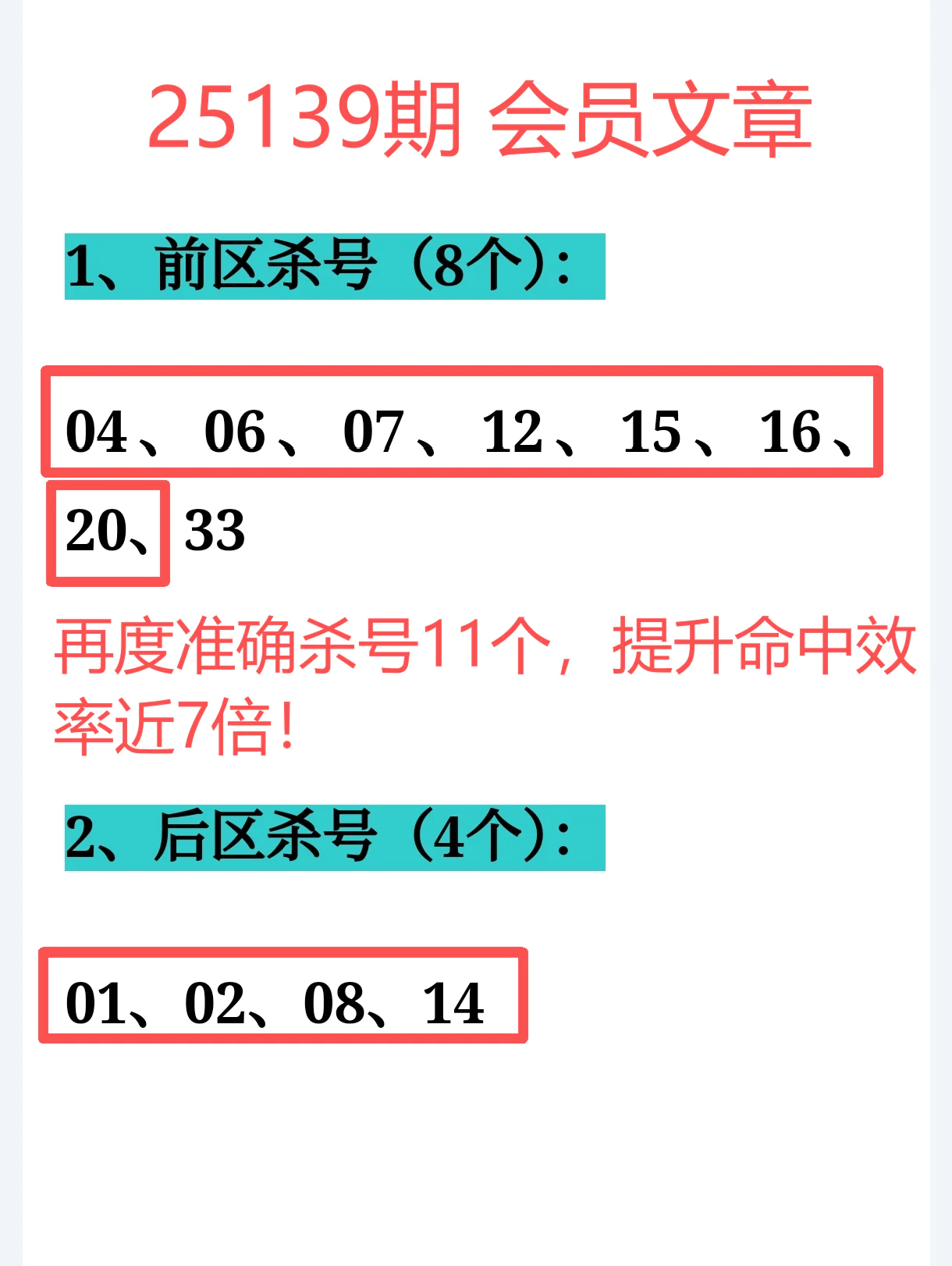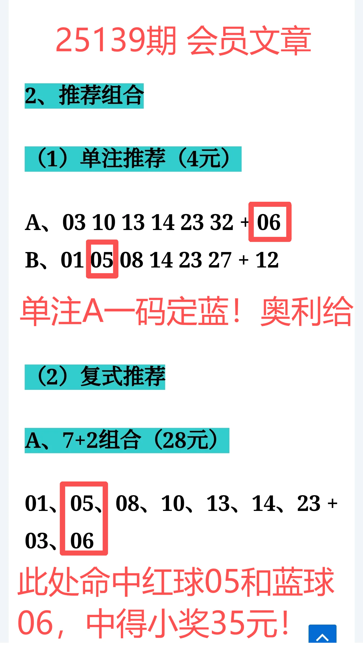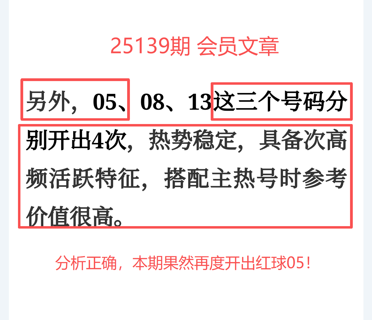 ✅ 上期免费文章+会员文章+充电体验卡三大板块合计共命中6个号码,分别是: