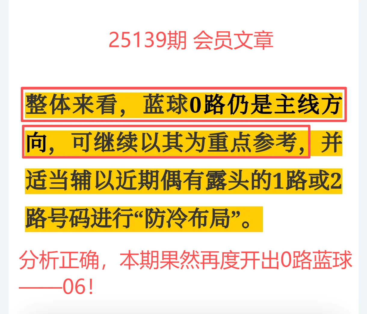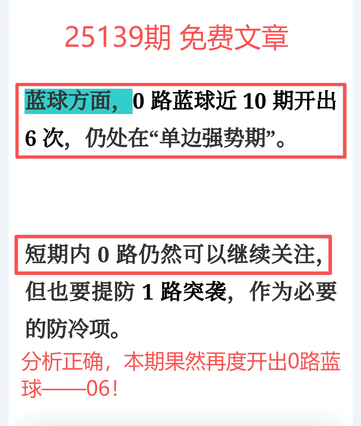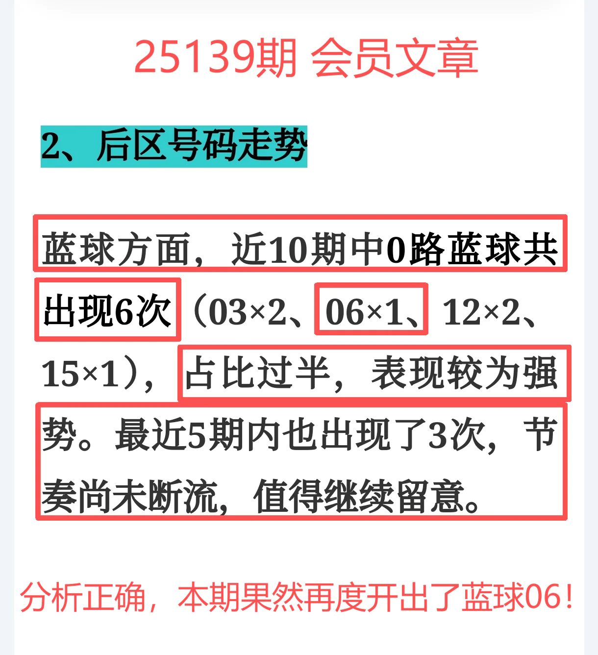 ✅ 012路分析:成功命中0路蓝球06,后区节奏稳稳拿下;