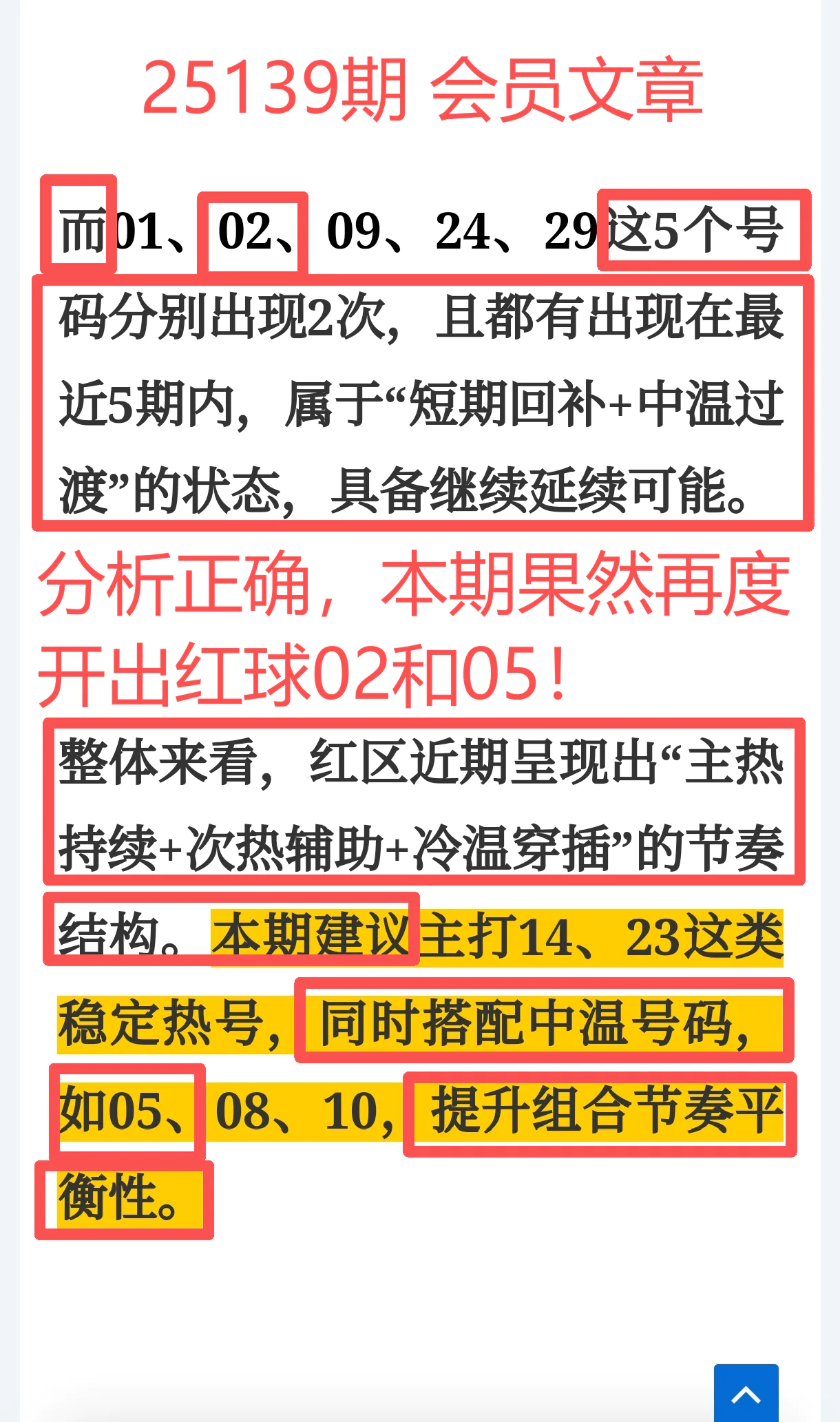 ✅ 冷热搭配:详细分析了02、05、17、22、30、33等号码的冷热态,并建议适度冷热搭配,结果上期这些号码全线开出,冷热均衡逻辑爆发力拉满;