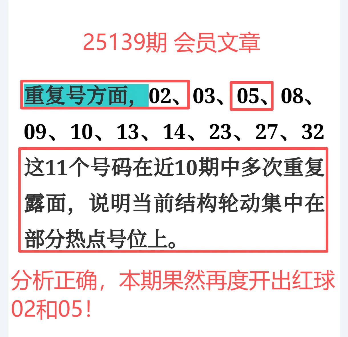 ✅ 重复号分析:命中红球02、05,连续性表现提前拿捏;