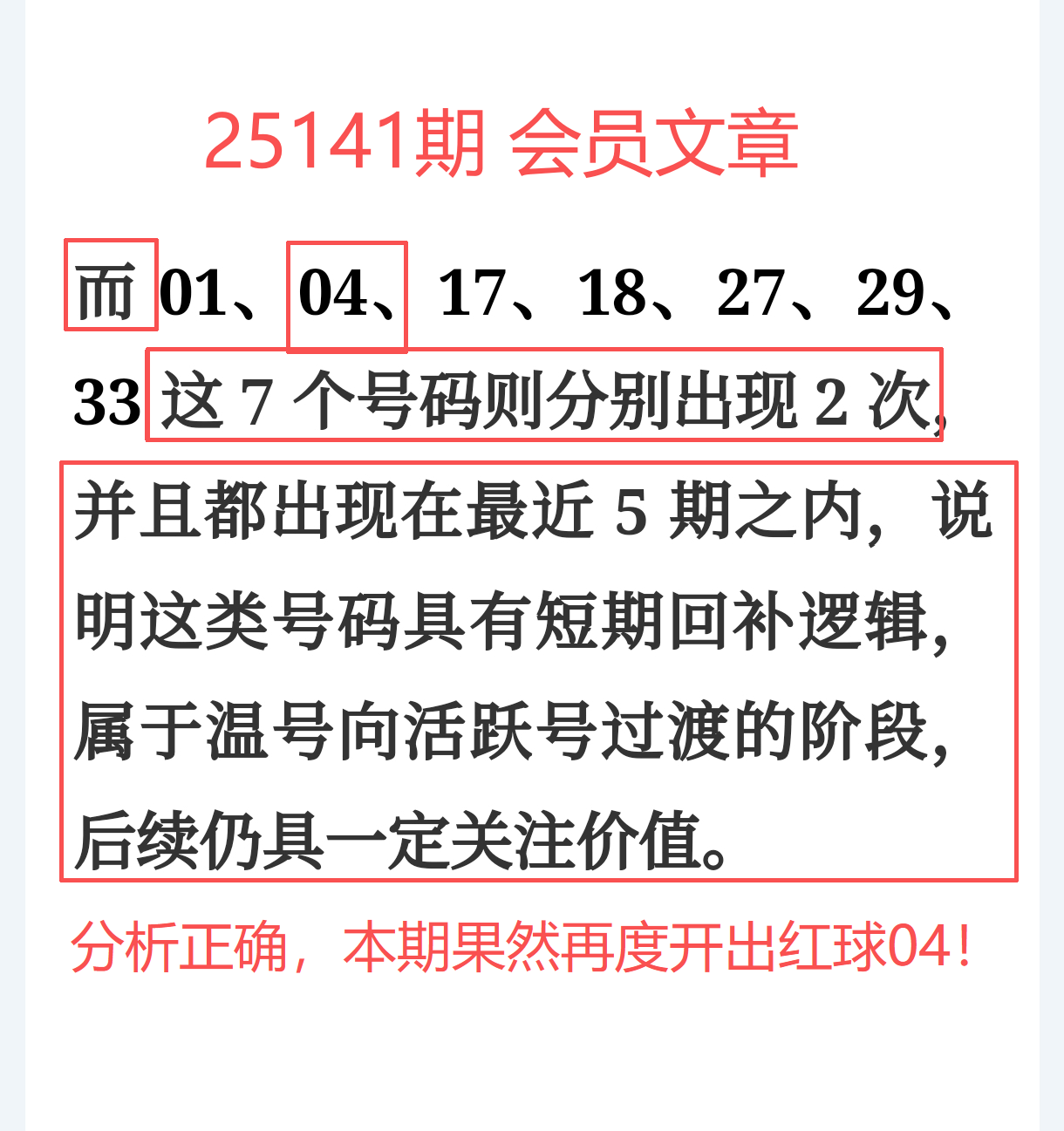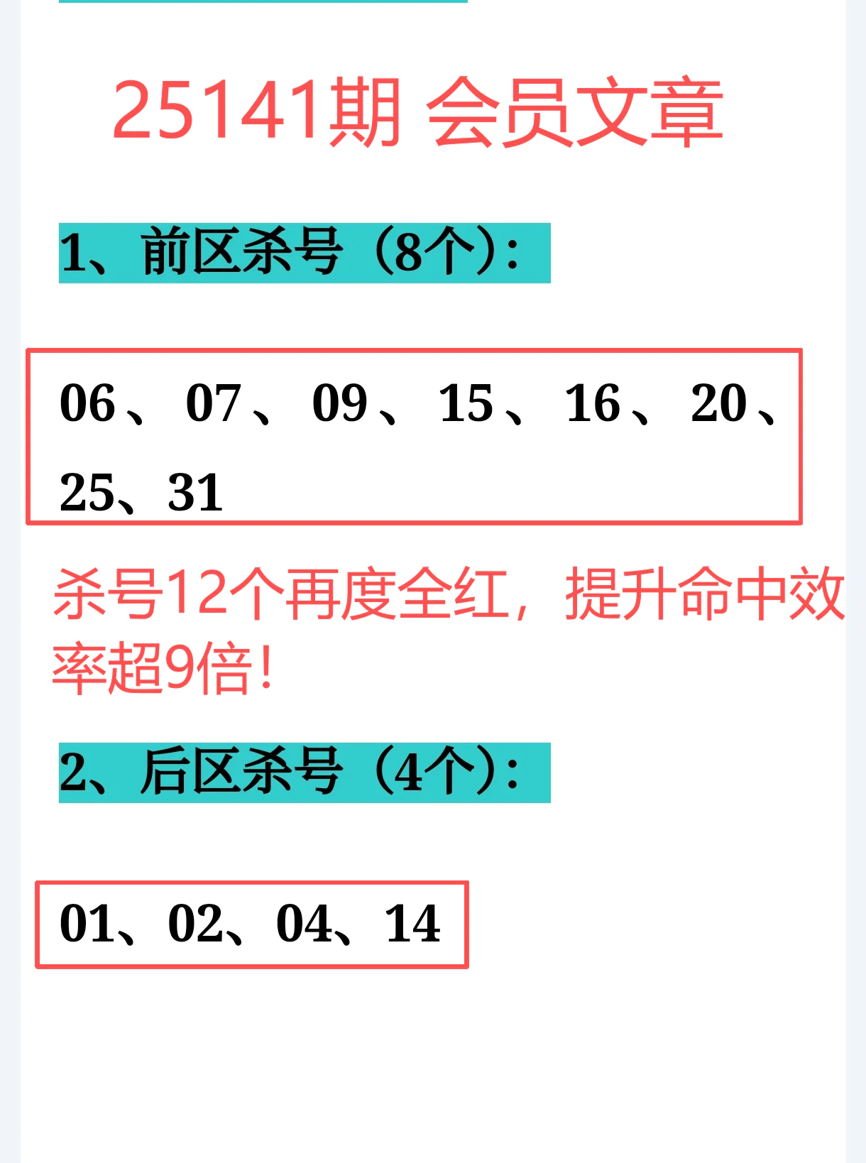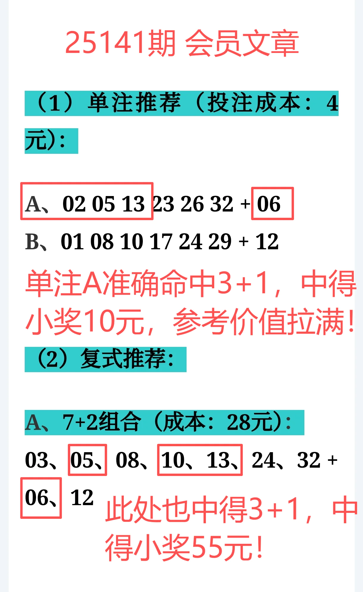 综合来看,免费文章 + 会员文章 + 充电体验卡合计命中7个号码: