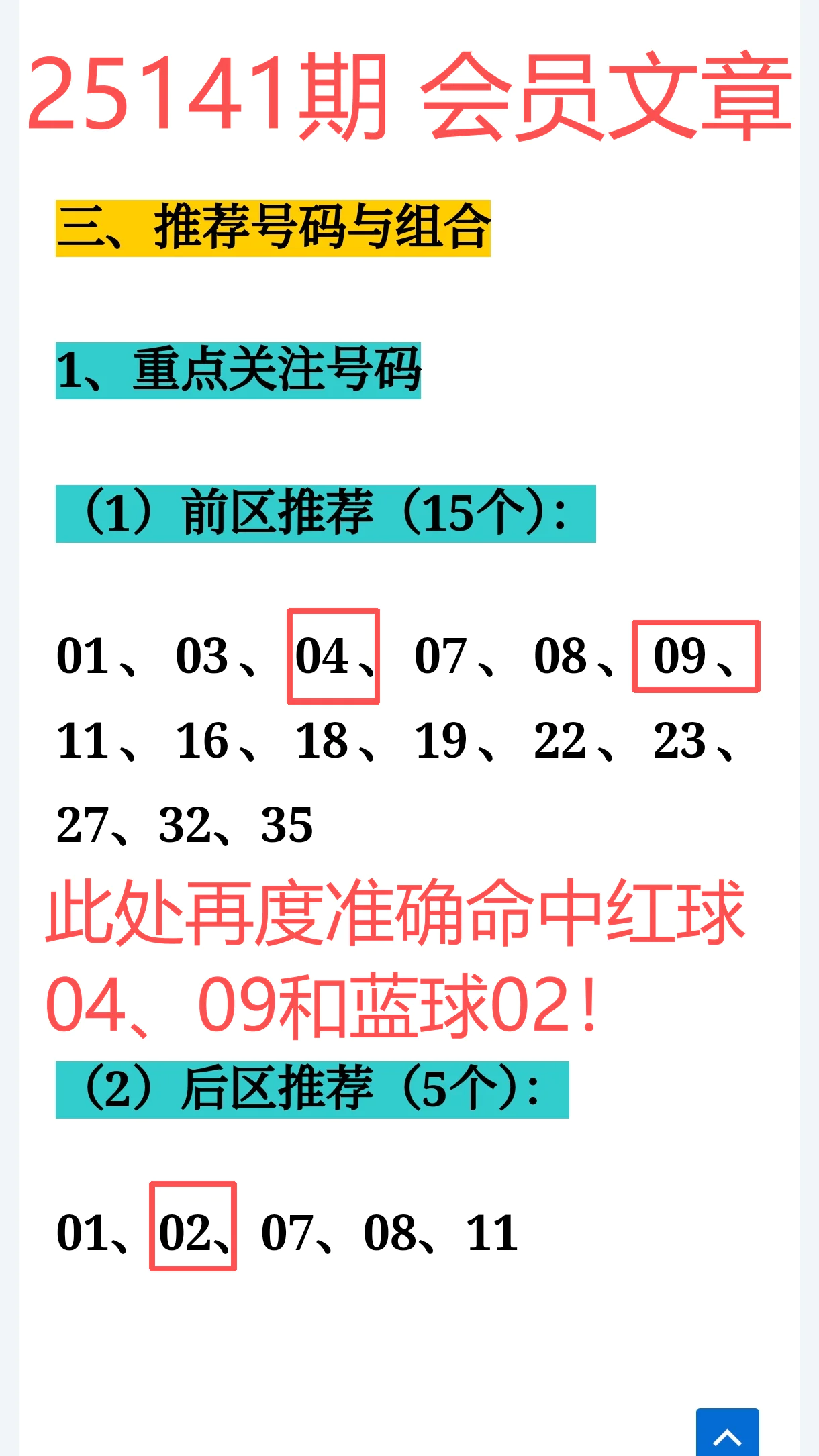上期免费文章 + 会员文章 + 充电体验卡合计共命中 5个号码,分别是红球 04、09、28、29 和蓝球 02;