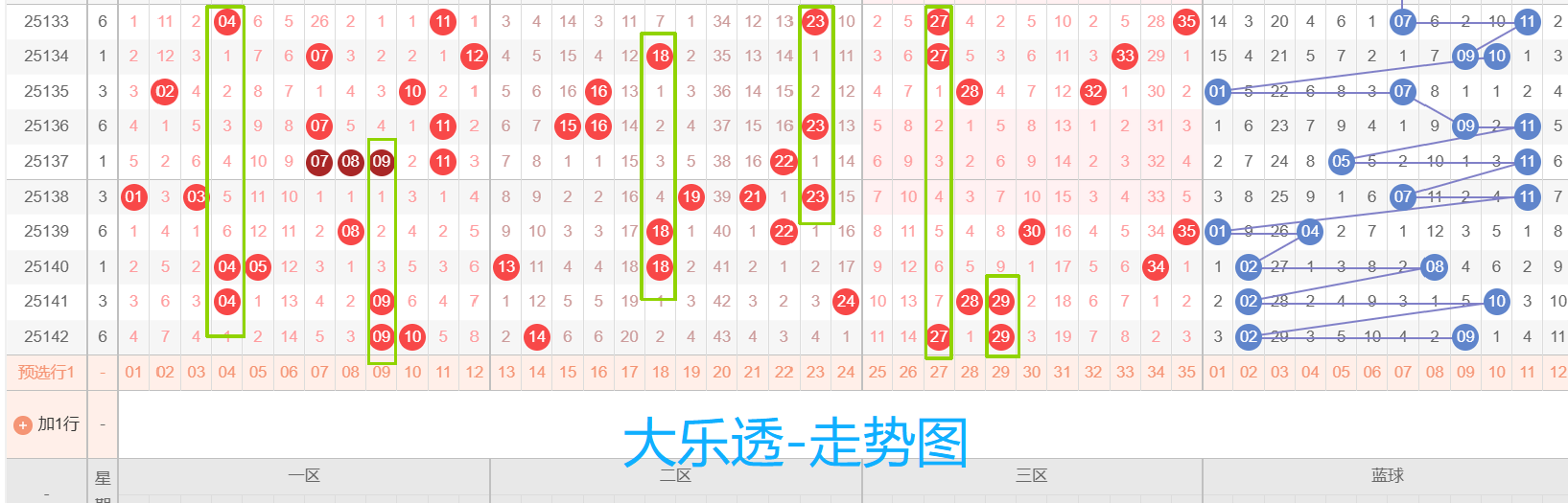 27、04、18、23等号码在近10期也有2~3次的稳定出号,具备一定的节奏惯性。