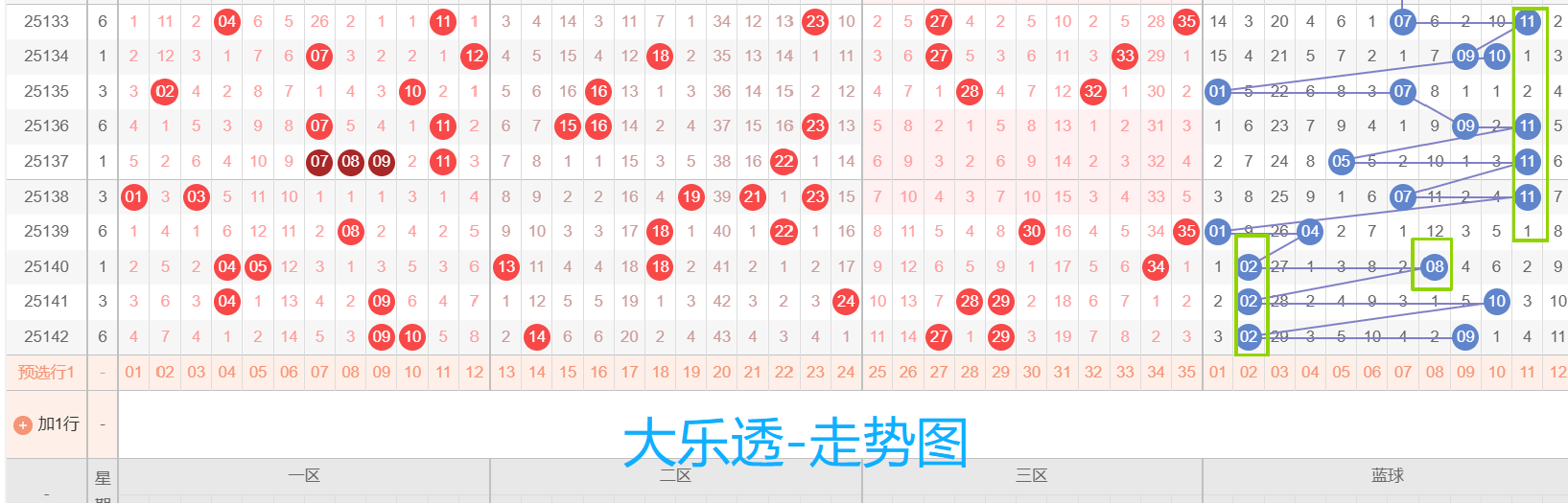 关键词:大乐透、杀号、高频热号、冷号回暖、连号和重复号、跨度、区间比、012路、质合比、复式、胆码、走势