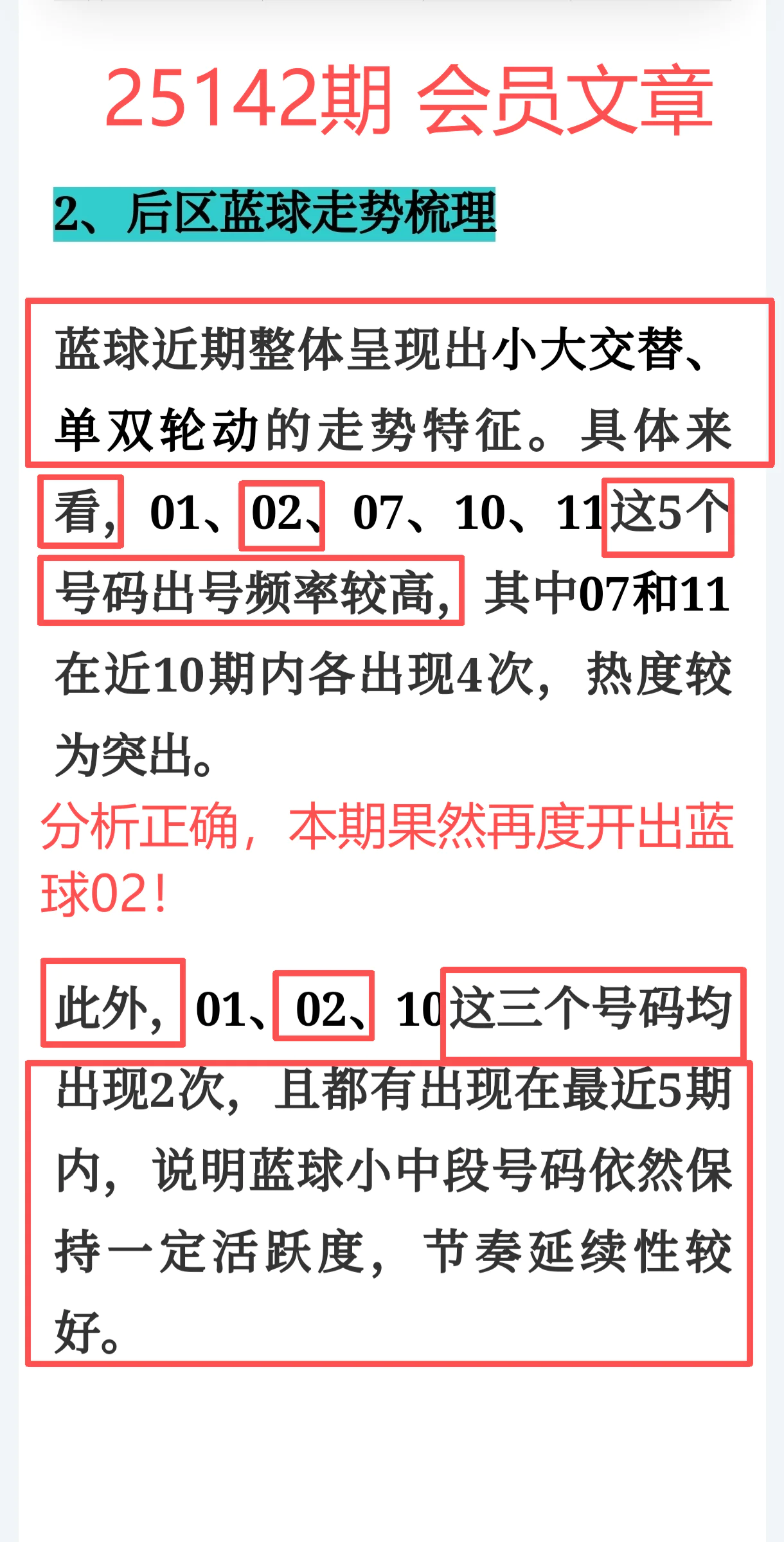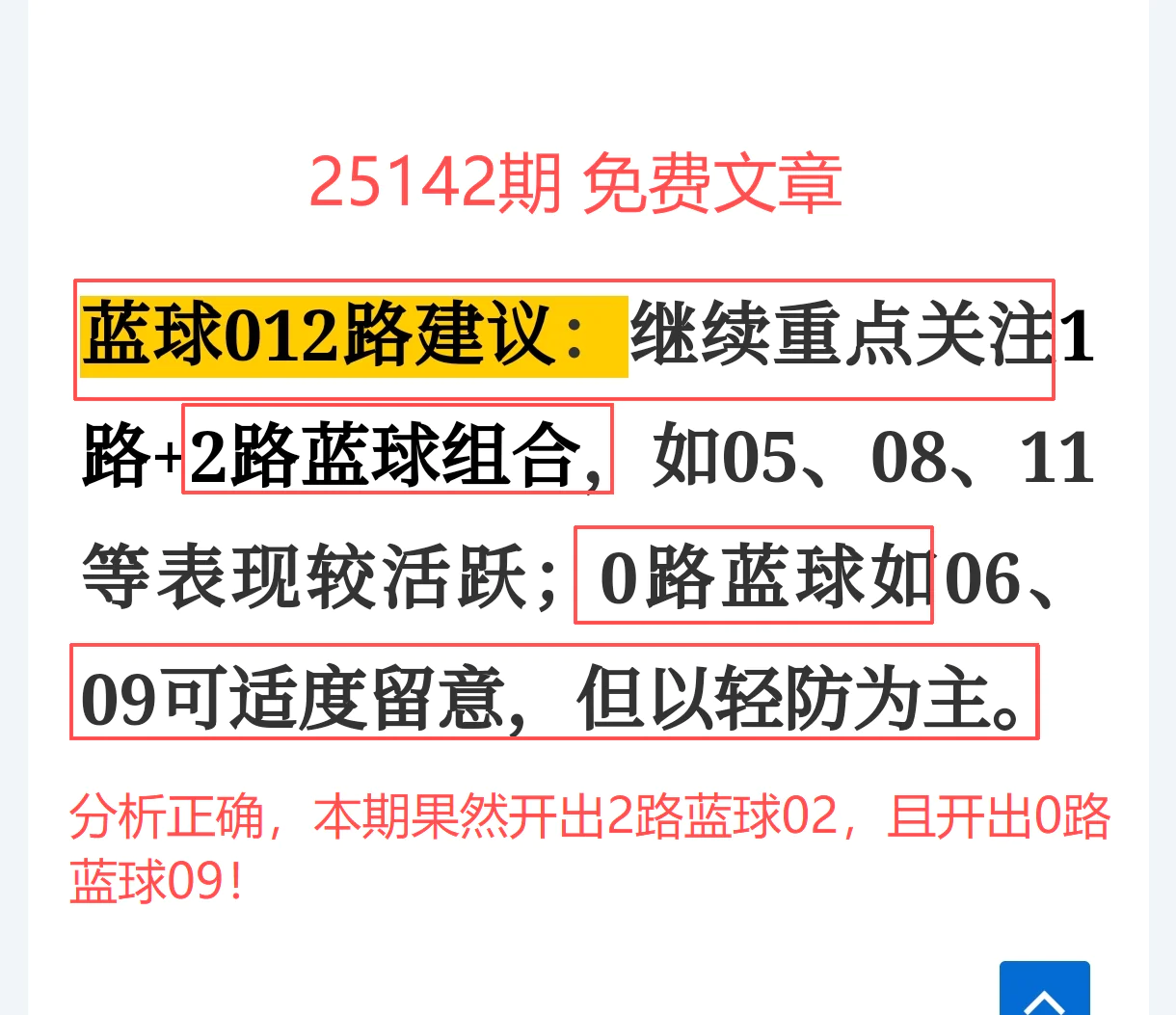 命中蓝球02,同时建议轻防0路蓝球,果然蓝球09同步开出,双胆齐爆红,后区命中率拉满;
