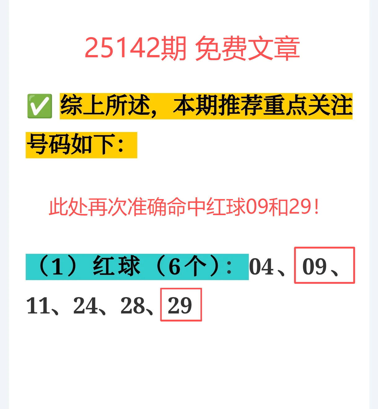 4、重点关注号: 命中红球09和29,整体节奏清晰、爆点实足;