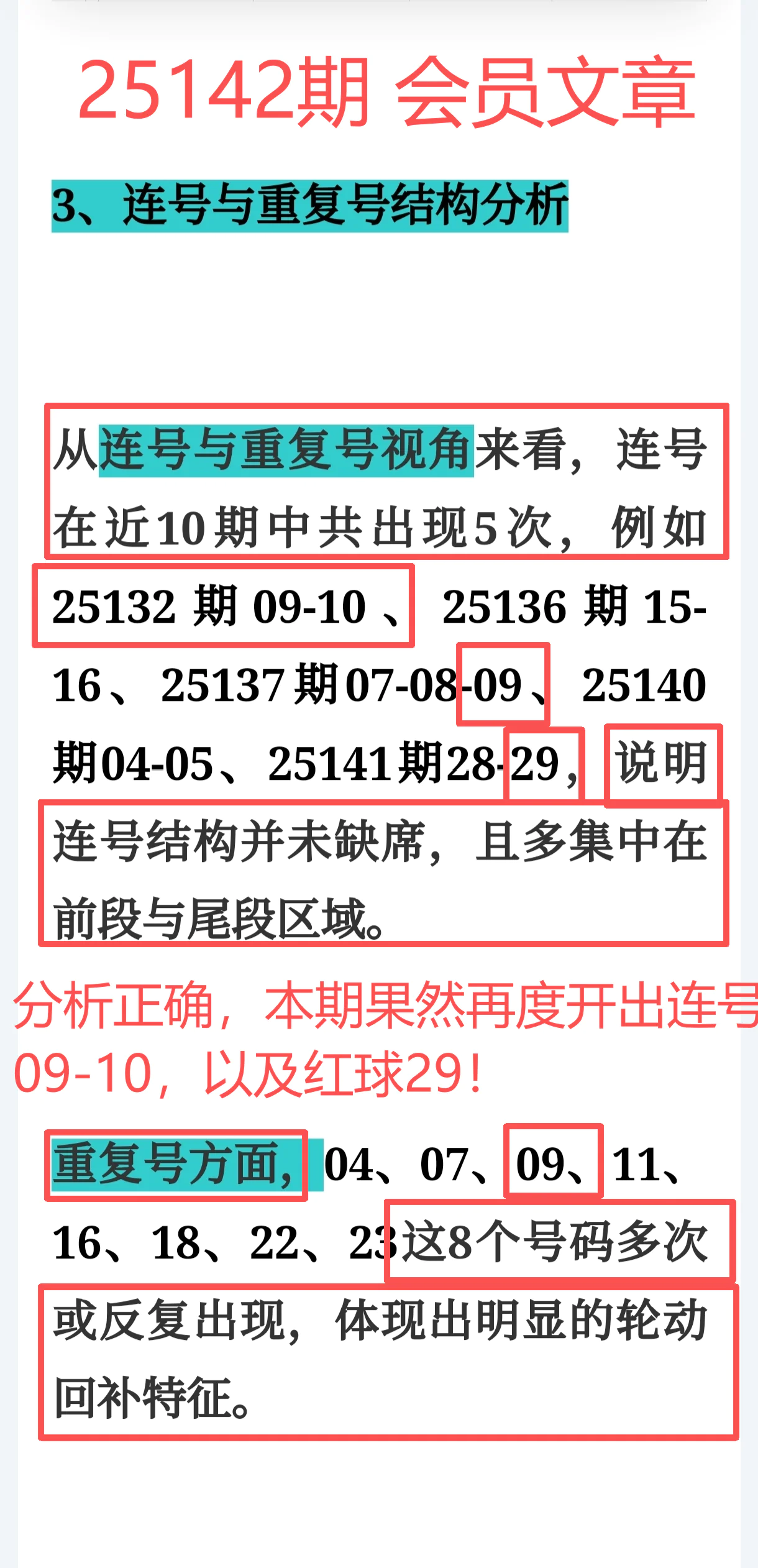 3、连号/重复号: 命中09-10连号+29重复号,节奏搭配合理;