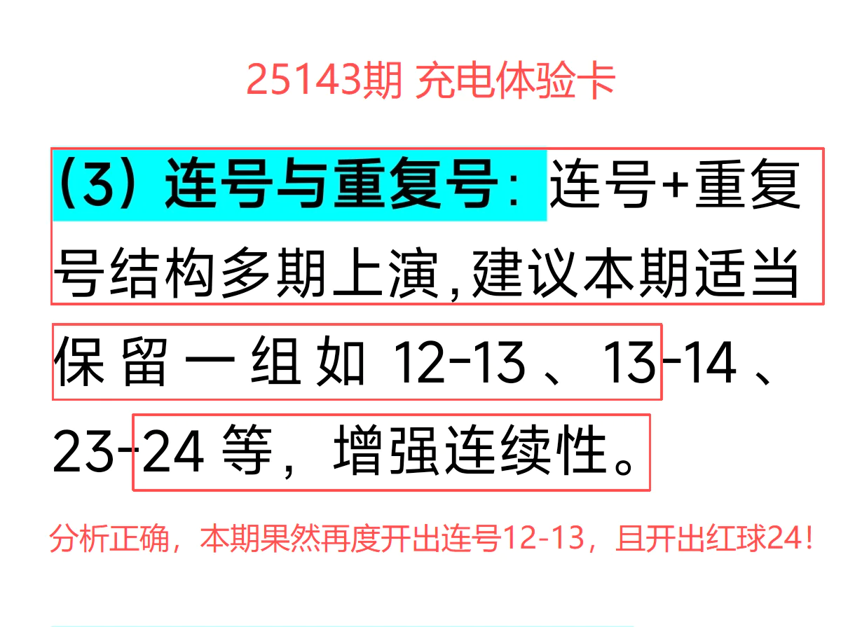 命中连号 12-13,以及重复号 13、24结构研判持续在线,连号与重号形成双重支撑,组合稳定性强