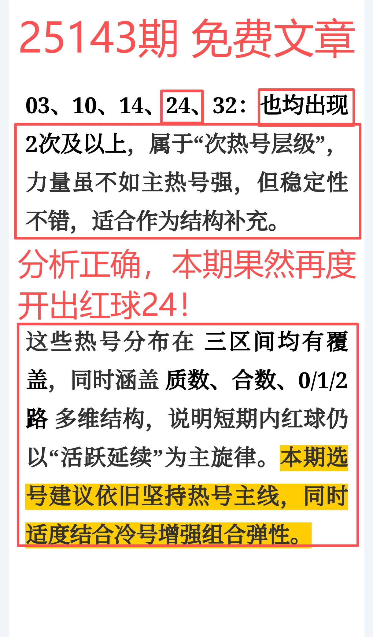 命中红球 02、13、24高频热号稳稳抓住,节奏判断持续在线;