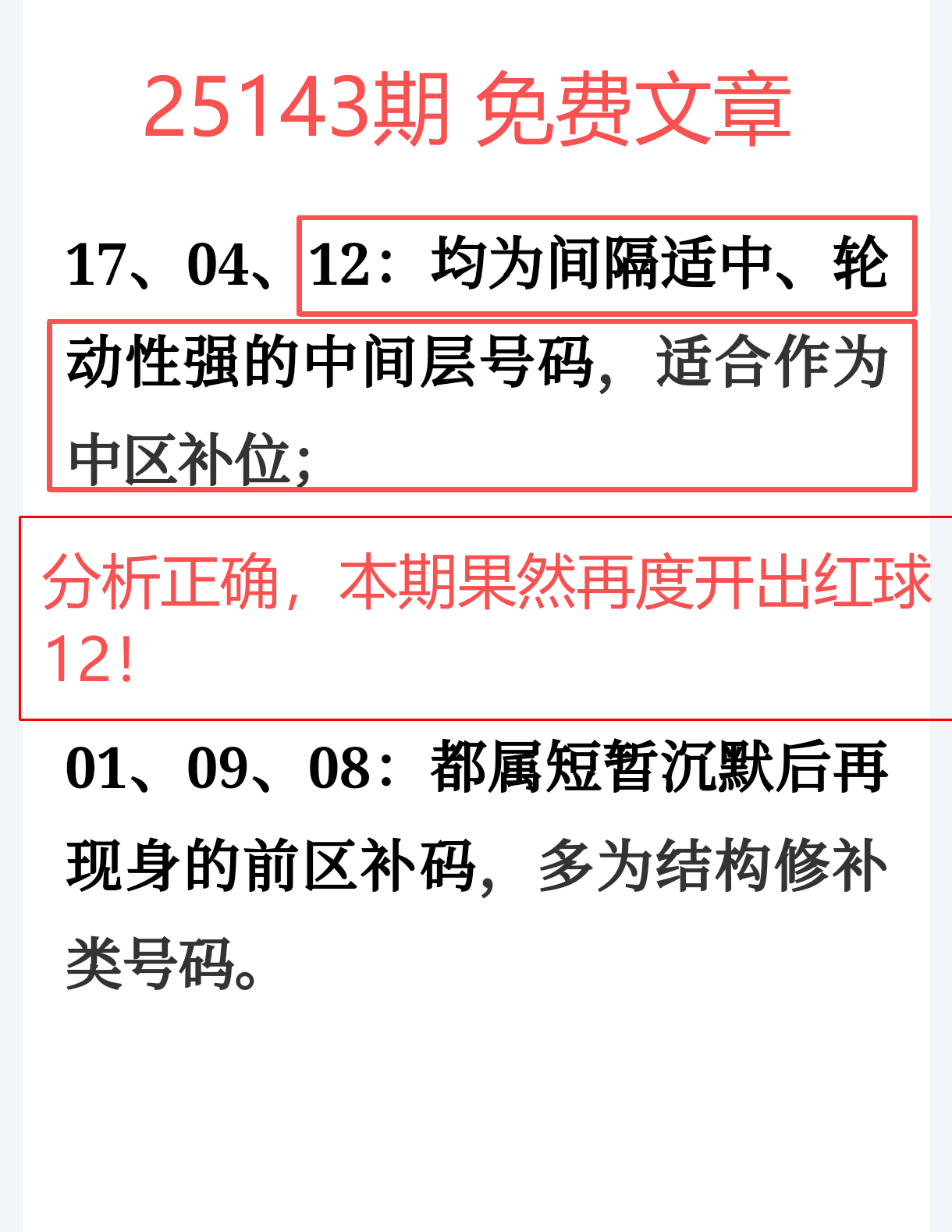 命中红球 12踩点及时,抓住冷号回升爆发节点;