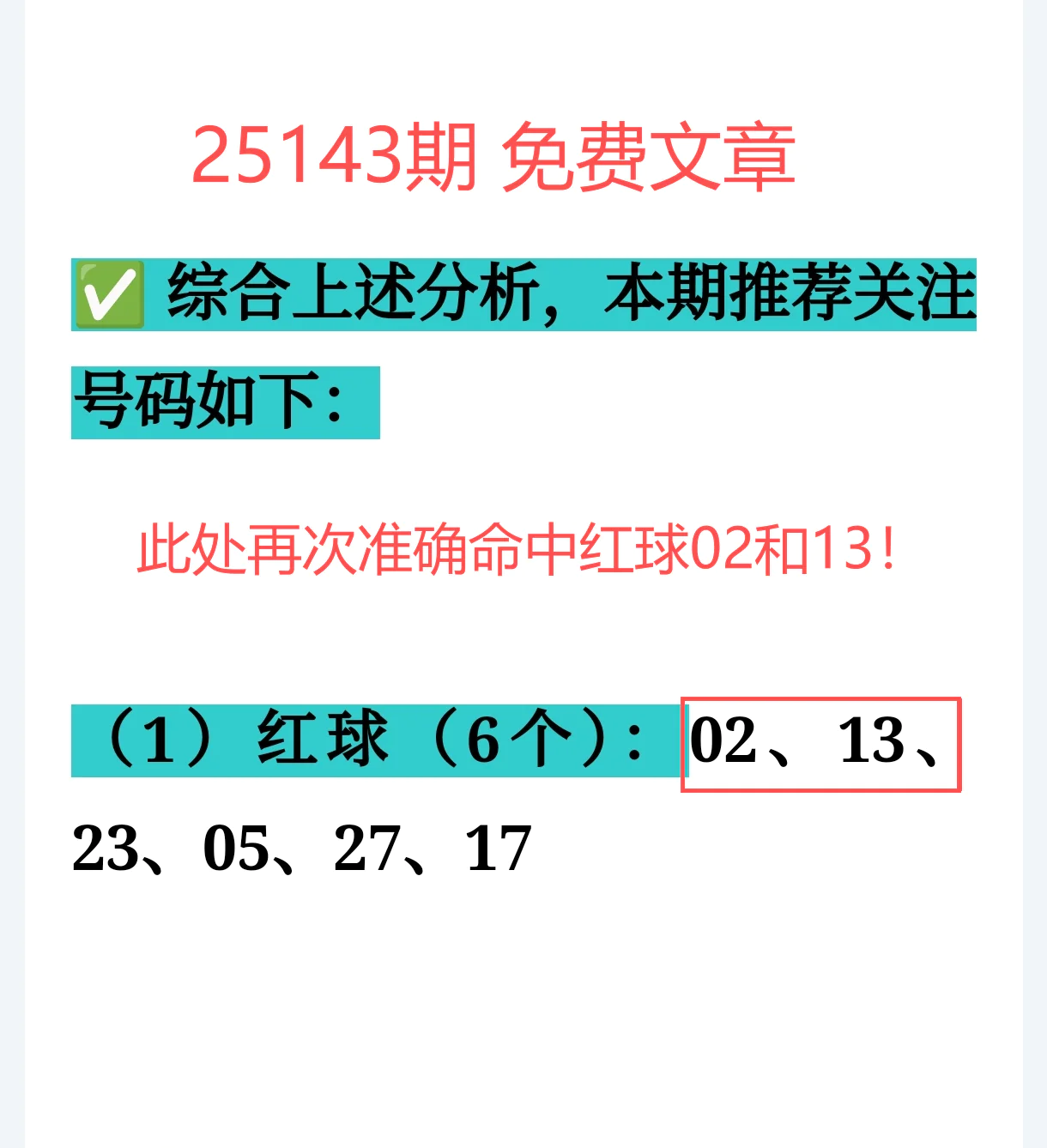 命中红球 02、13免费区已命中核心位,覆盖力惊喜加分!