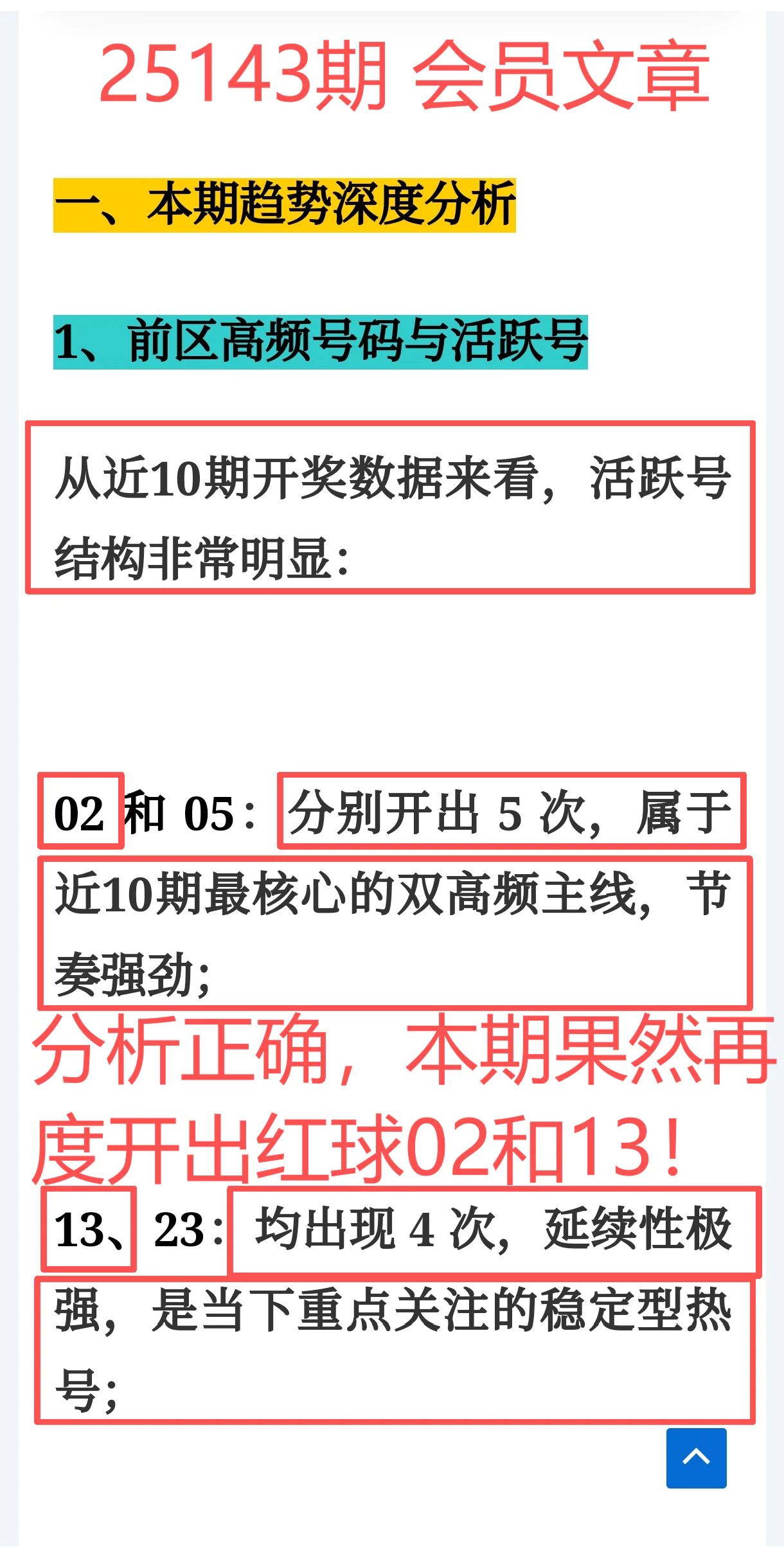 1、前区高频号+活跃号分析