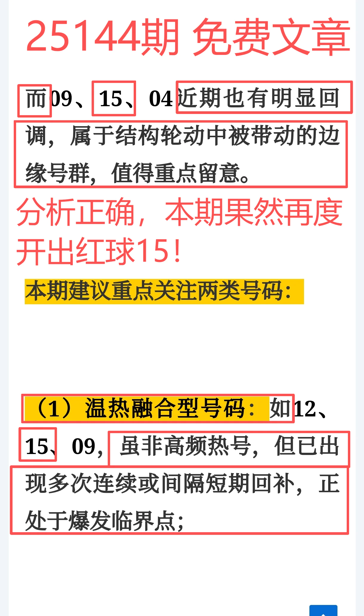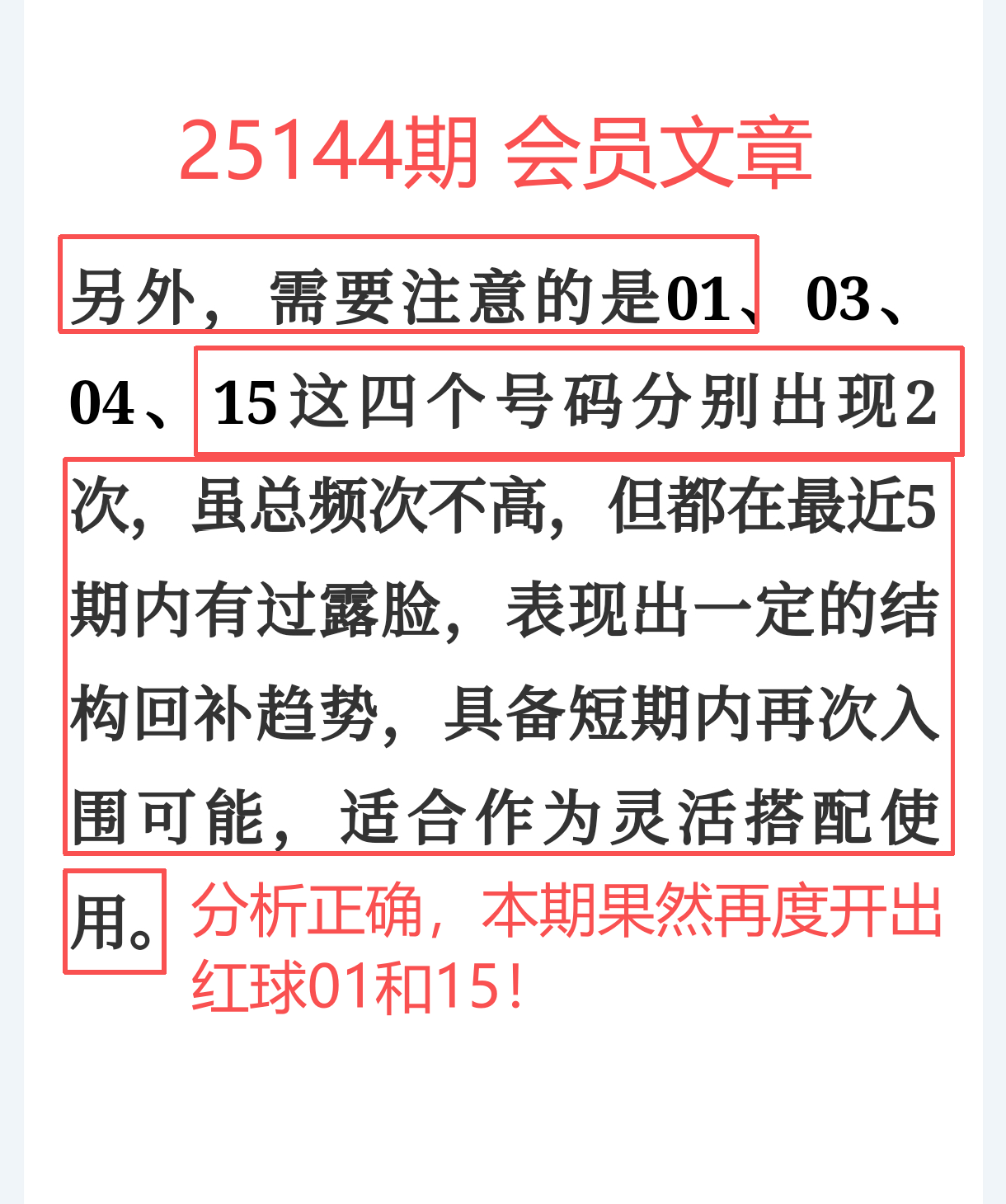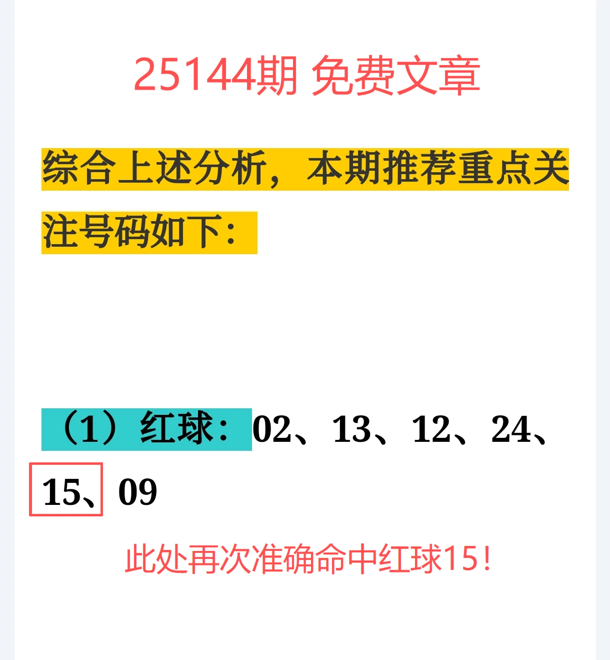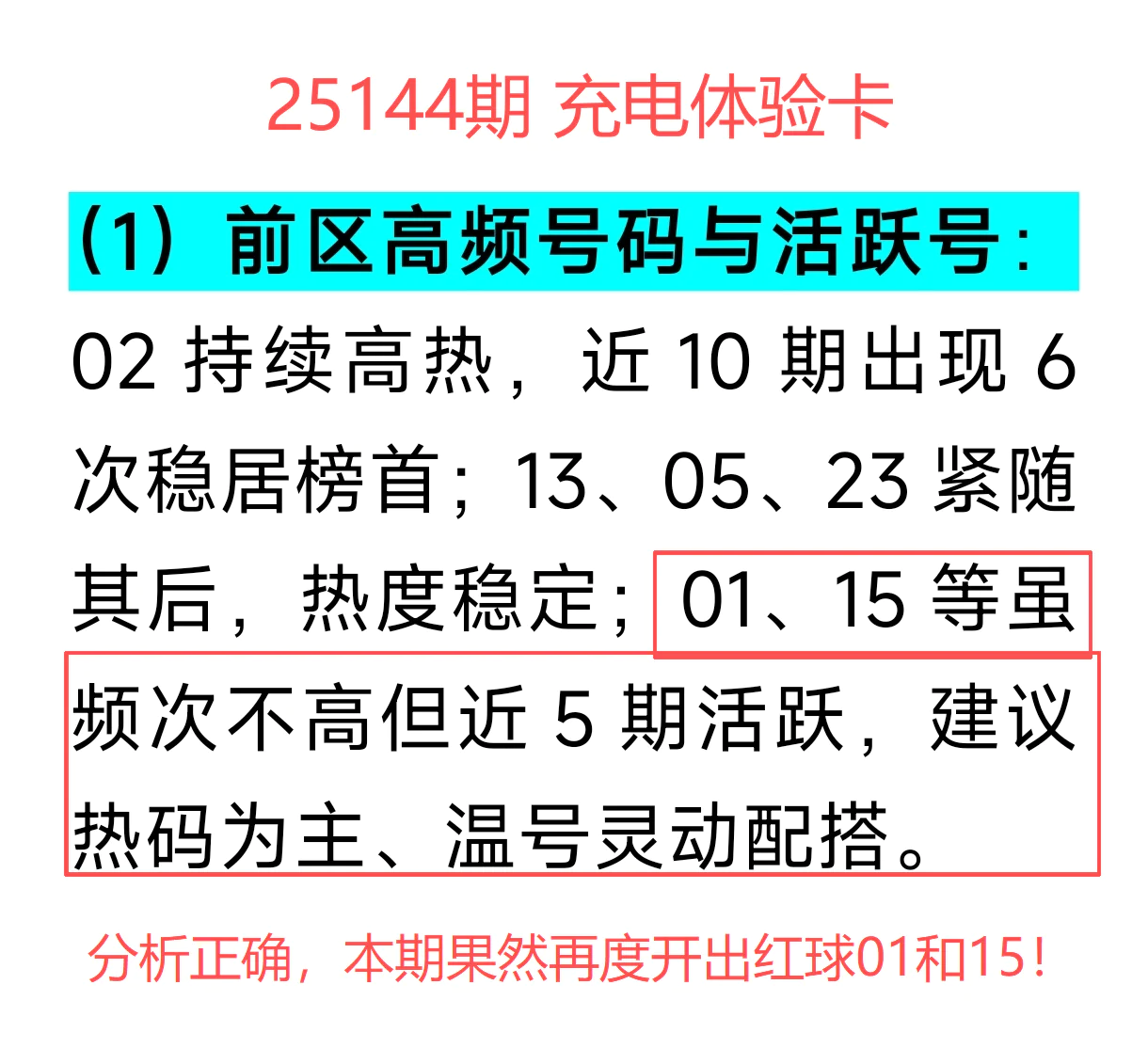 命中红球 01、15,两枚核心活跃码强势发力,节奏贴合度极高,定位稳准狠;